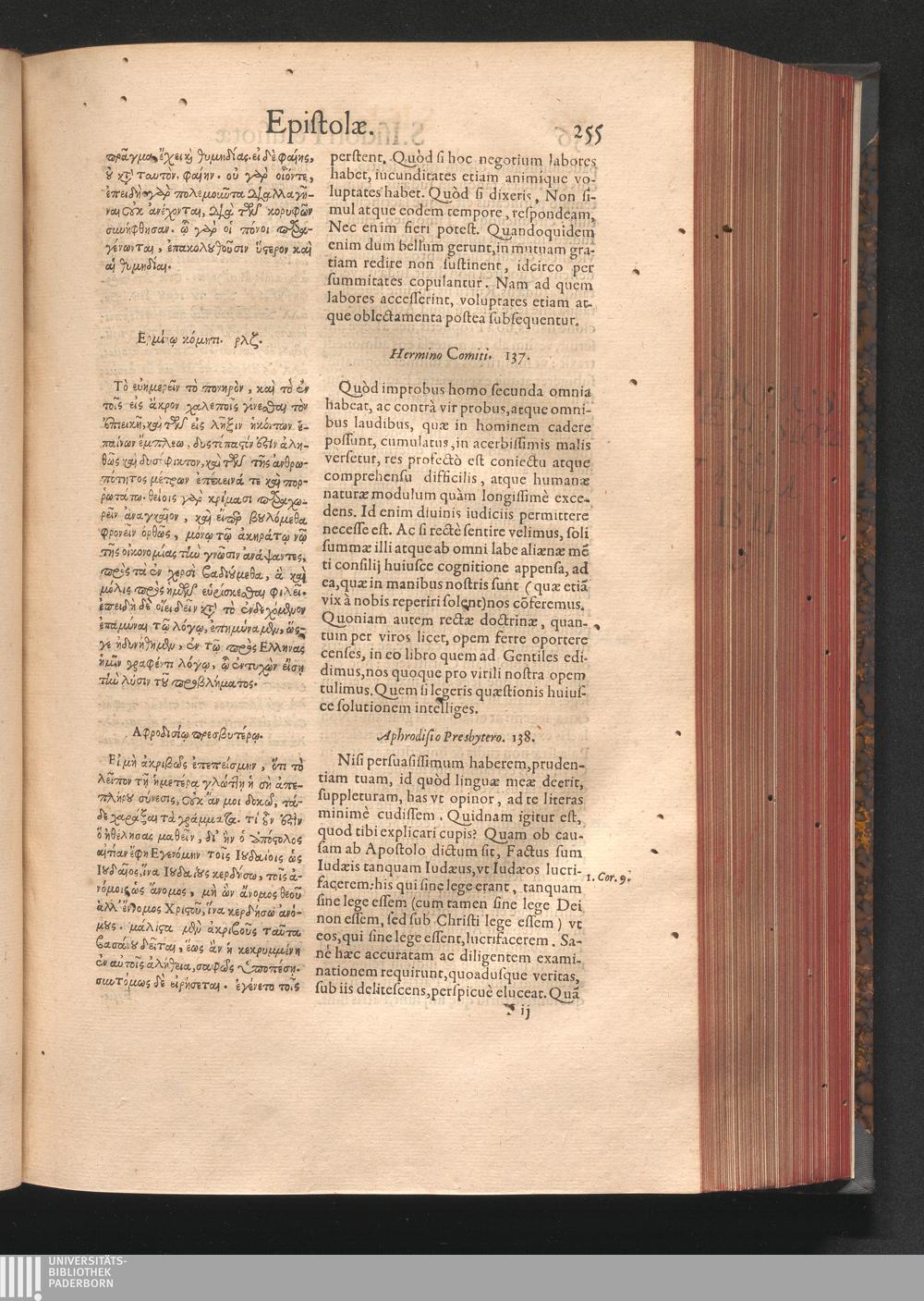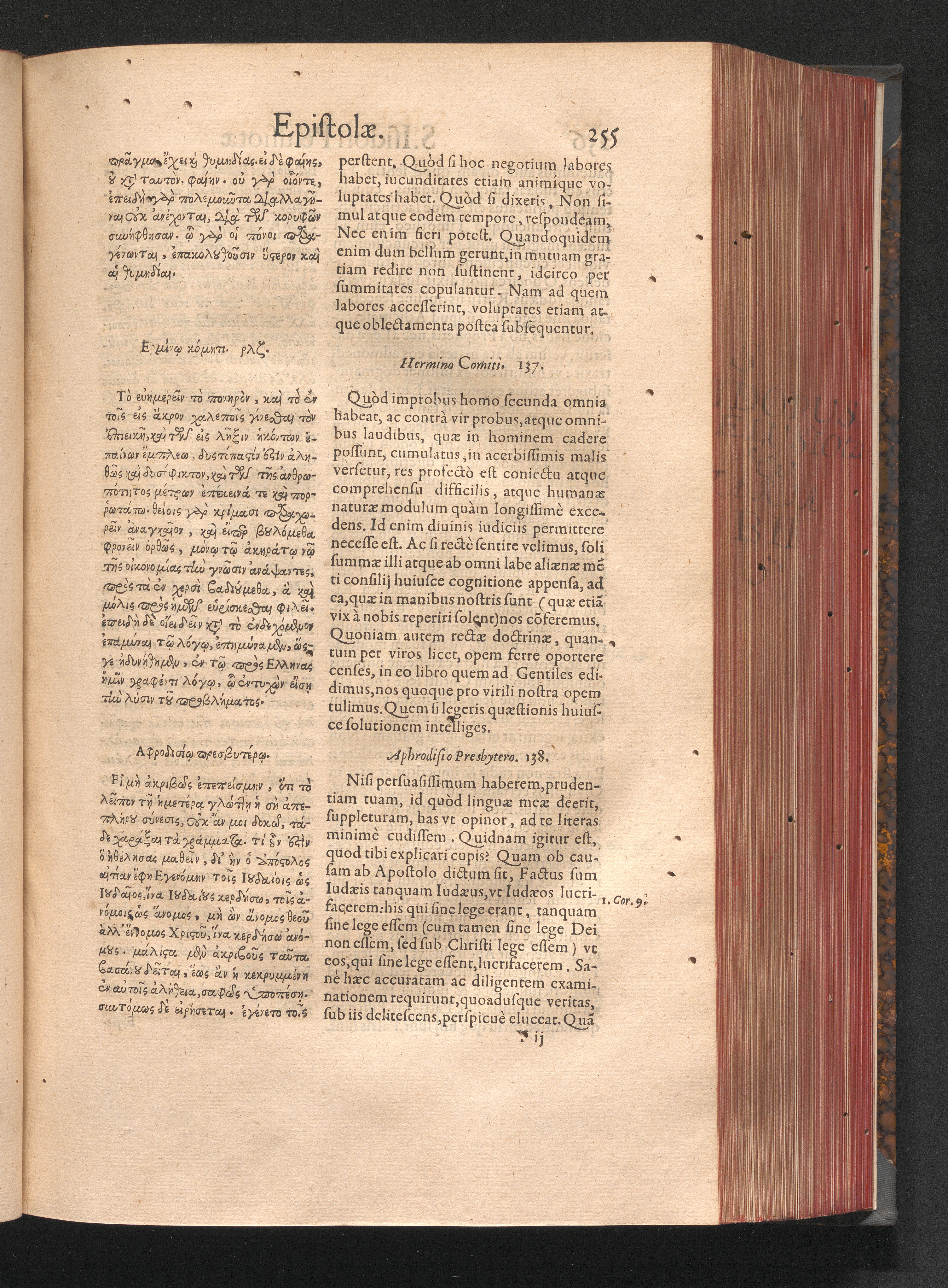 Epistolai tu hagiu Isidōru tu Pēlusiōtu / Quibus è regione accessit latina Clariss. viri Iacobi Billii Prunęi, S. Michaëlis in Eremo quondam Cœnobiarchæ, interpretatio