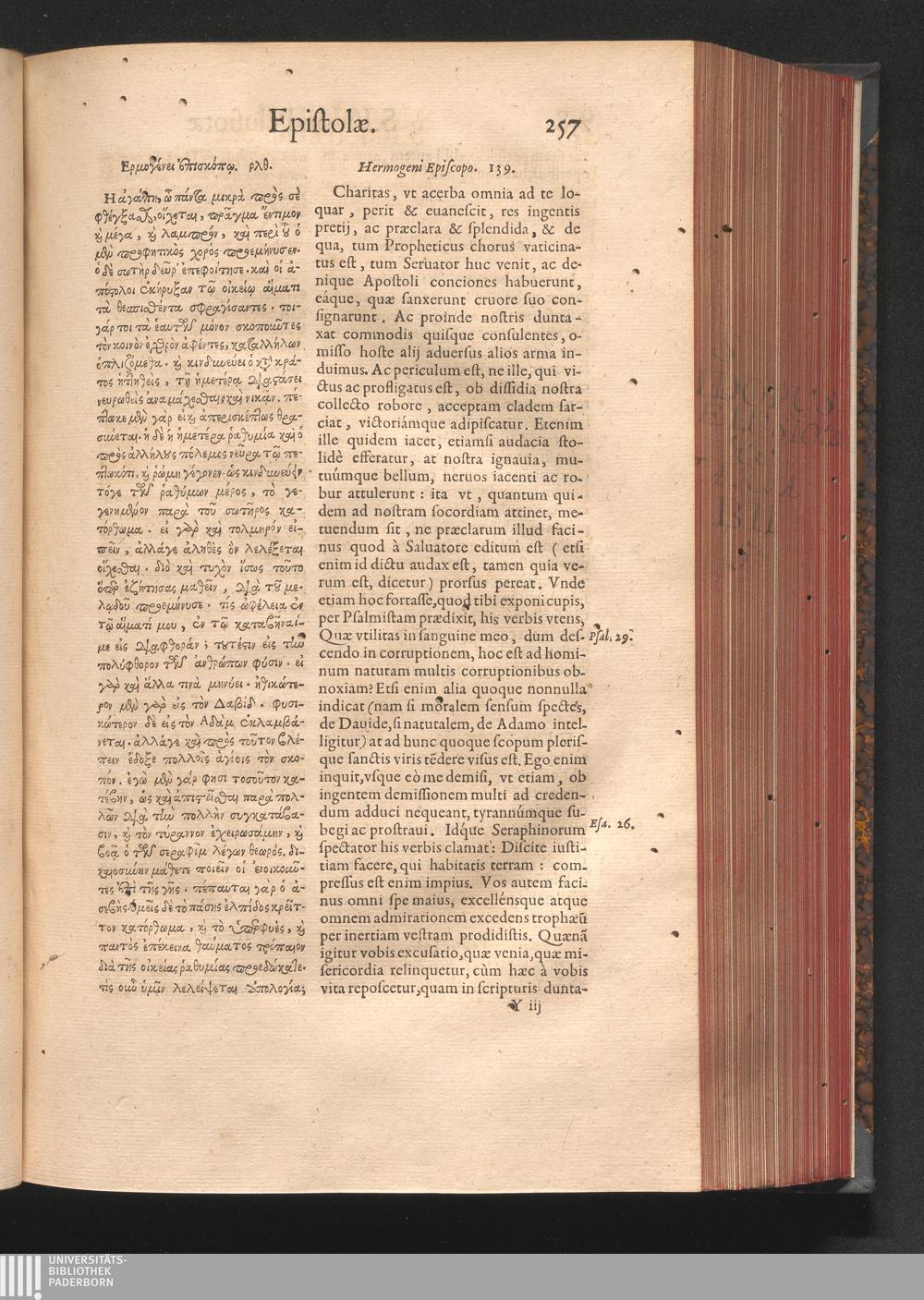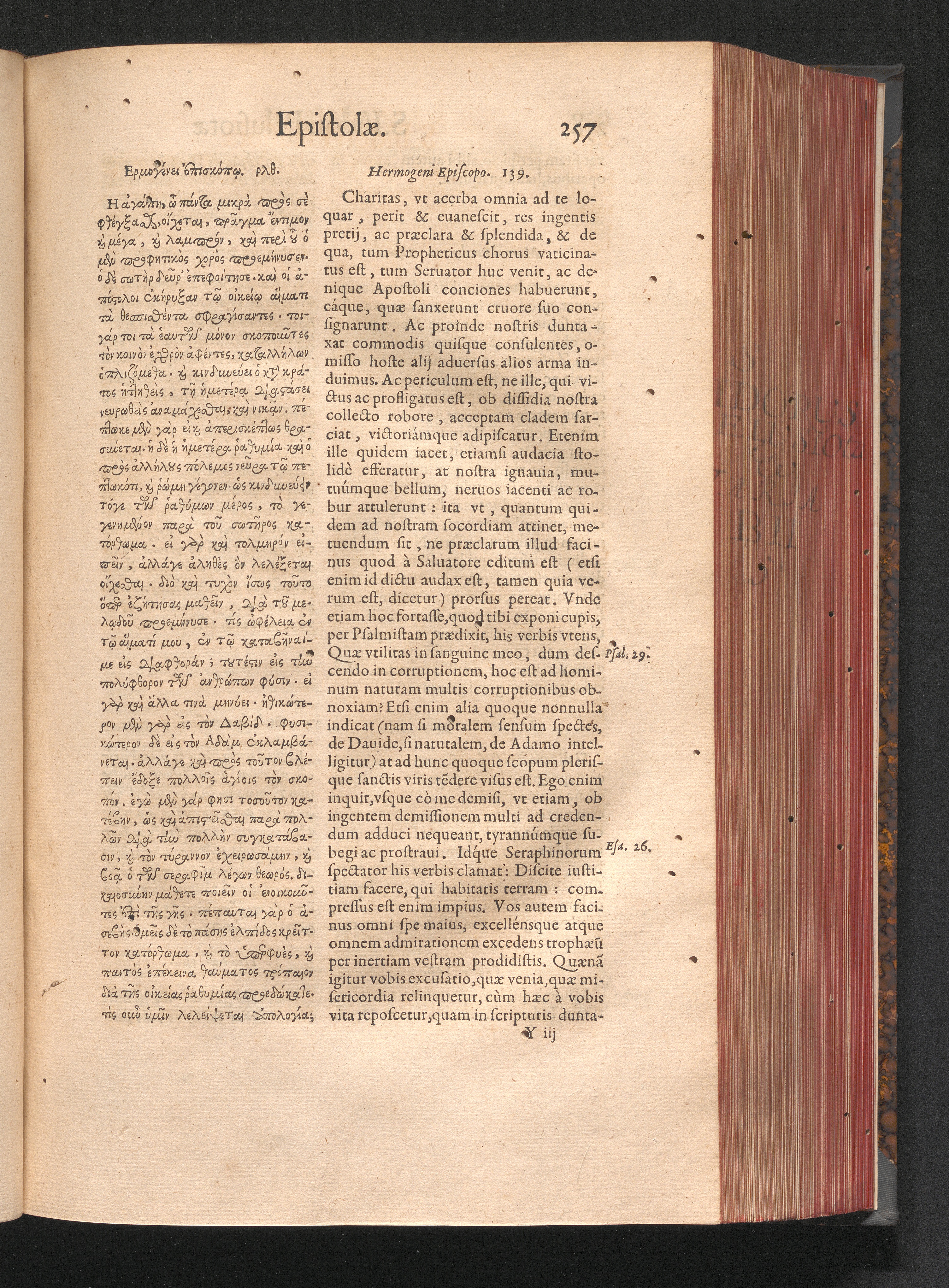 Epistolai tu hagiu Isidōru tu Pēlusiōtu / Quibus è regione accessit latina Clariss. viri Iacobi Billii Prunęi, S. Michaëlis in Eremo quondam Cœnobiarchæ, interpretatio