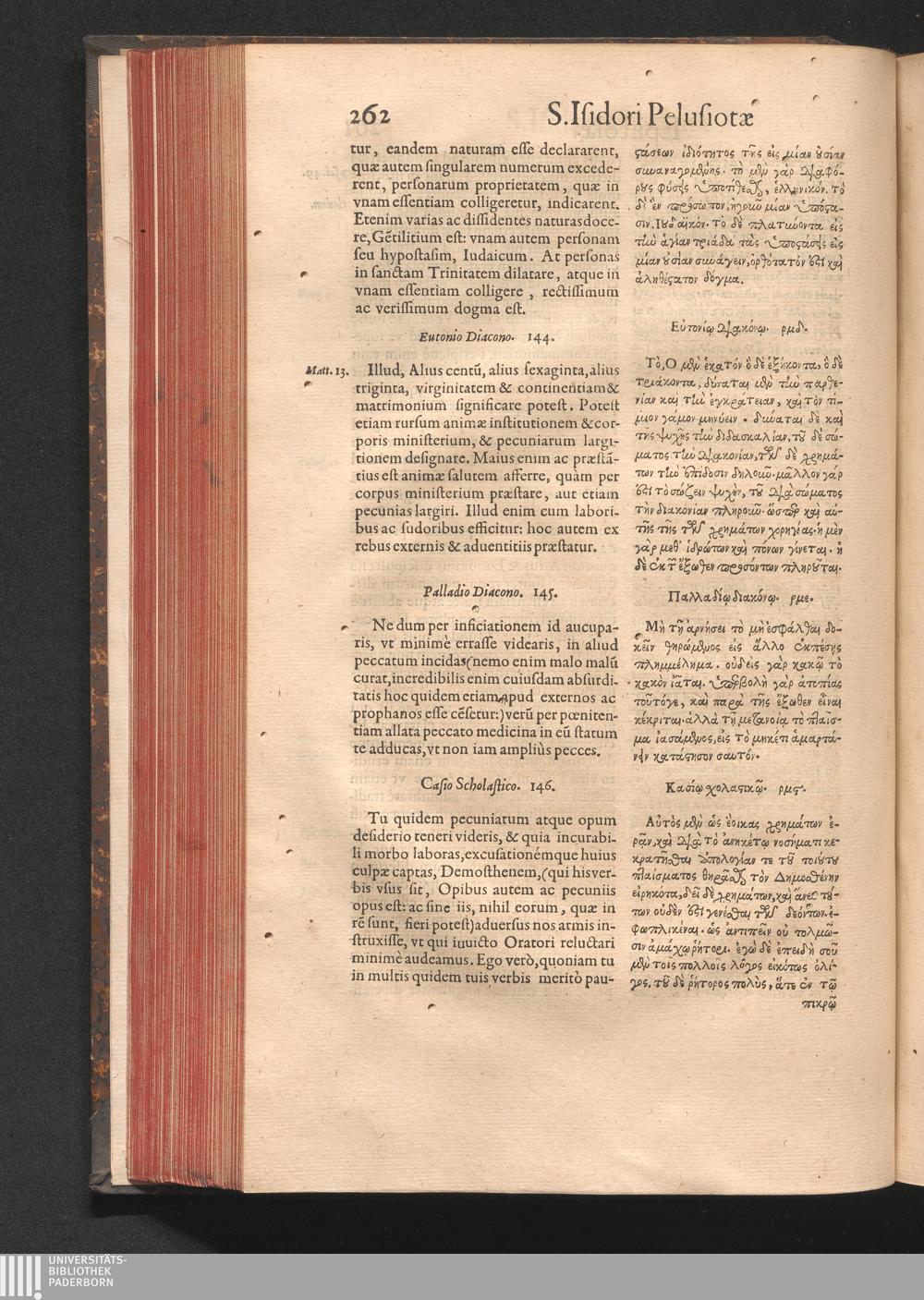 Epistolai tu hagiu Isidōru tu Pēlusiōtu / Quibus è regione accessit latina Clariss. viri Iacobi Billii Prunęi, S. Michaëlis in Eremo quondam Cœnobiarchæ, interpretatio