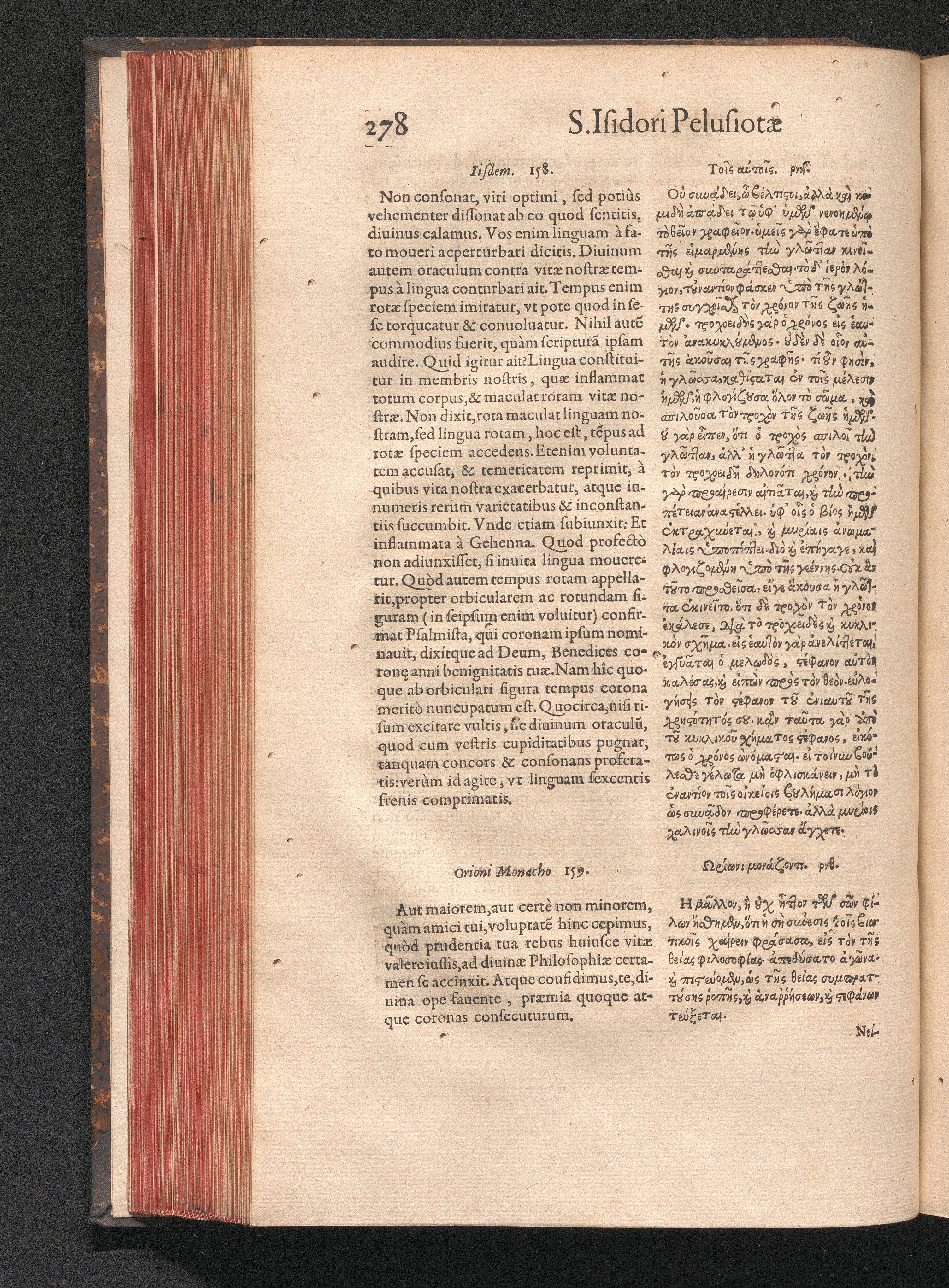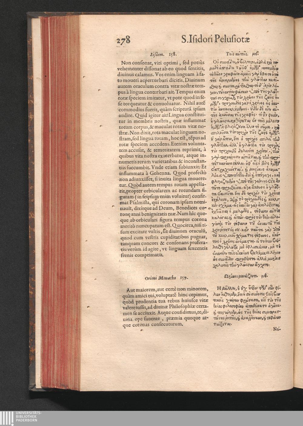 Epistolai tu hagiu Isidōru tu Pēlusiōtu / Quibus è regione accessit latina Clariss. viri Iacobi Billii Prunęi, S. Michaëlis in Eremo quondam Cœnobiarchæ, interpretatio