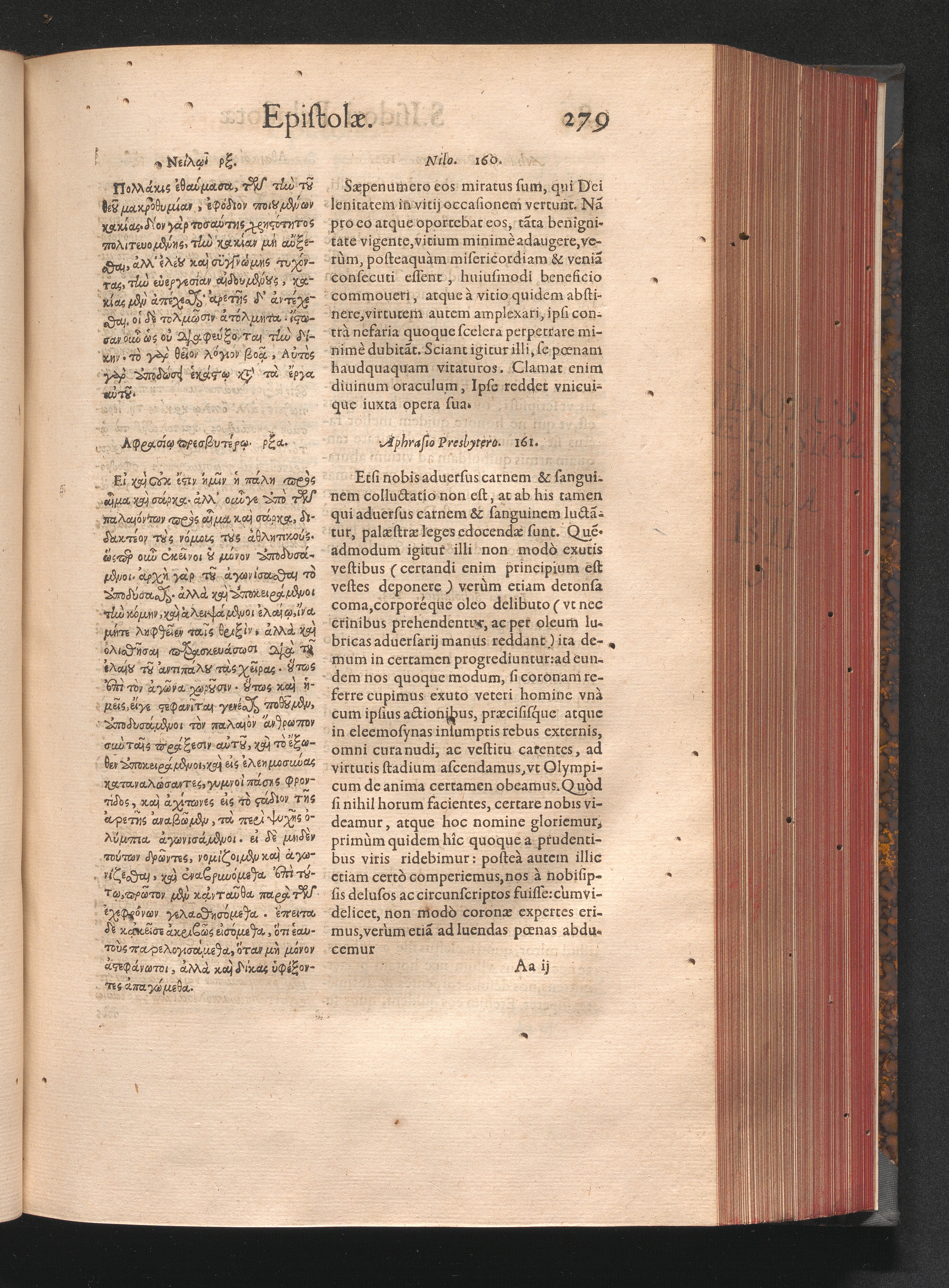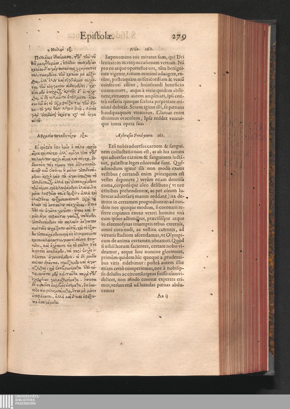 Epistolai tu hagiu Isidōru tu Pēlusiōtu / Quibus è regione accessit latina Clariss. viri Iacobi Billii Prunęi, S. Michaëlis in Eremo quondam Cœnobiarchæ, interpretatio
