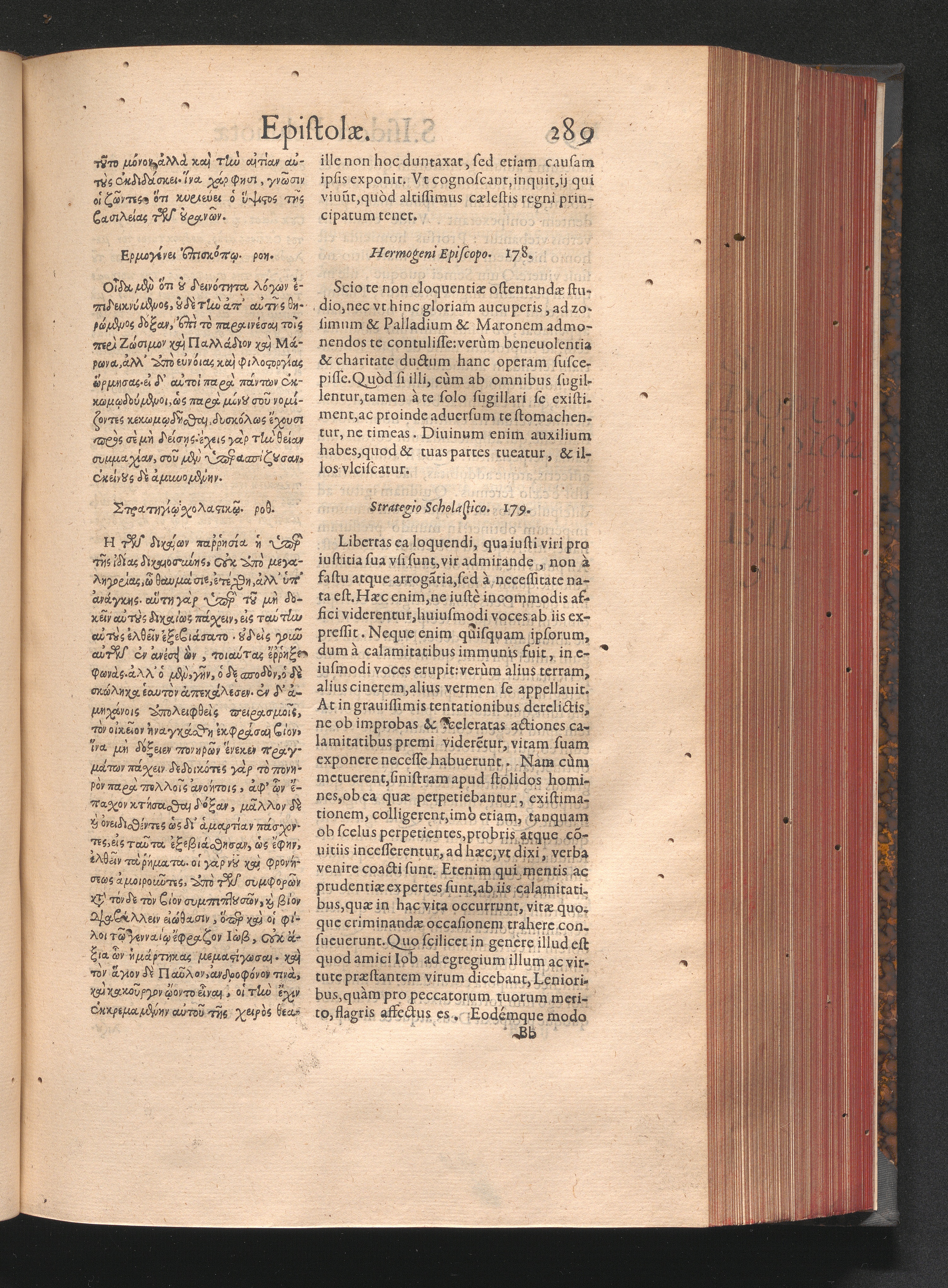 Epistolai tu hagiu Isidōru tu Pēlusiōtu / Quibus è regione accessit latina Clariss. viri Iacobi Billii Prunęi, S. Michaëlis in Eremo quondam Cœnobiarchæ, interpretatio