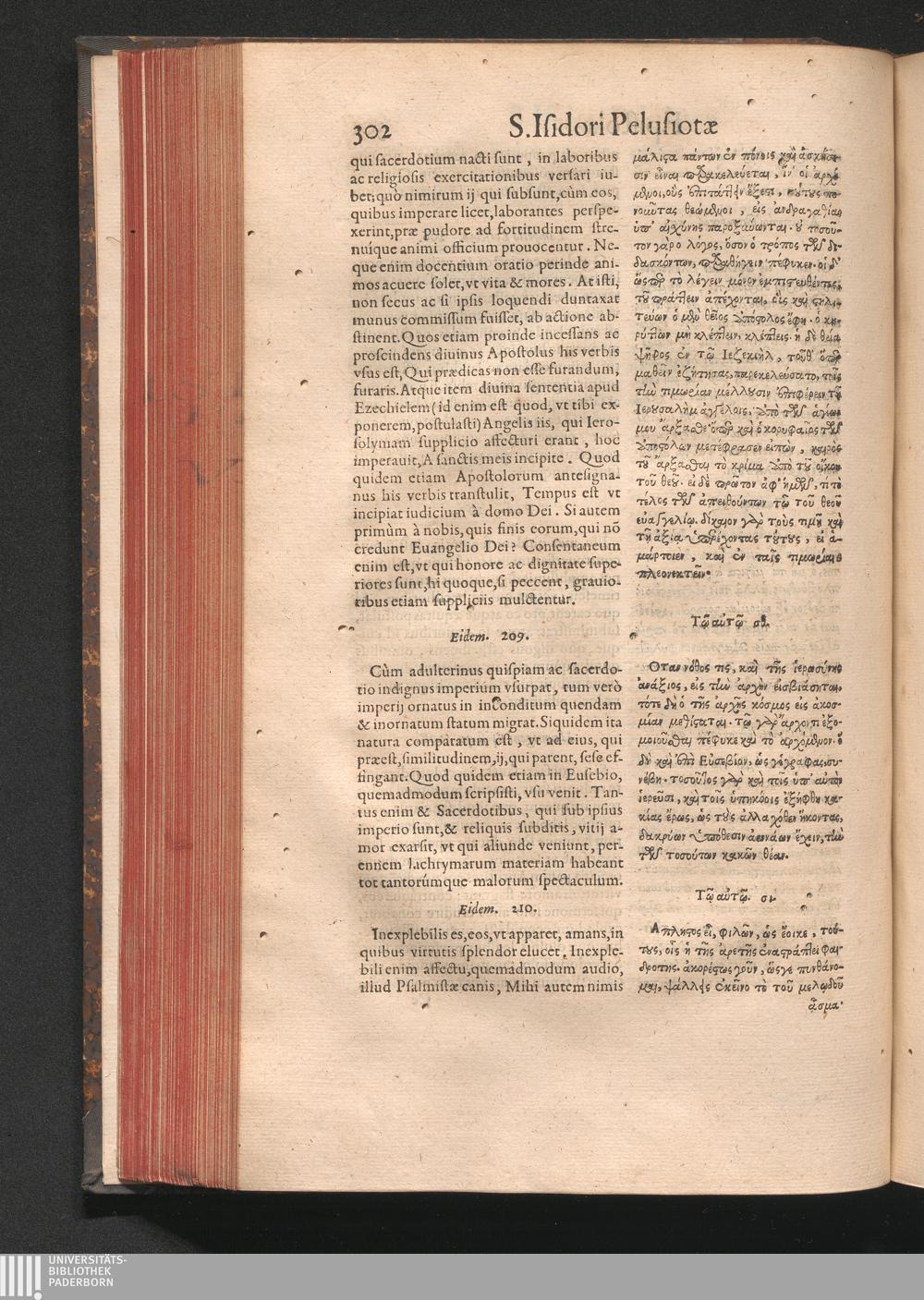 Epistolai tu hagiu Isidōru tu Pēlusiōtu / Quibus è regione accessit latina Clariss. viri Iacobi Billii Prunęi, S. Michaëlis in Eremo quondam Cœnobiarchæ, interpretatio