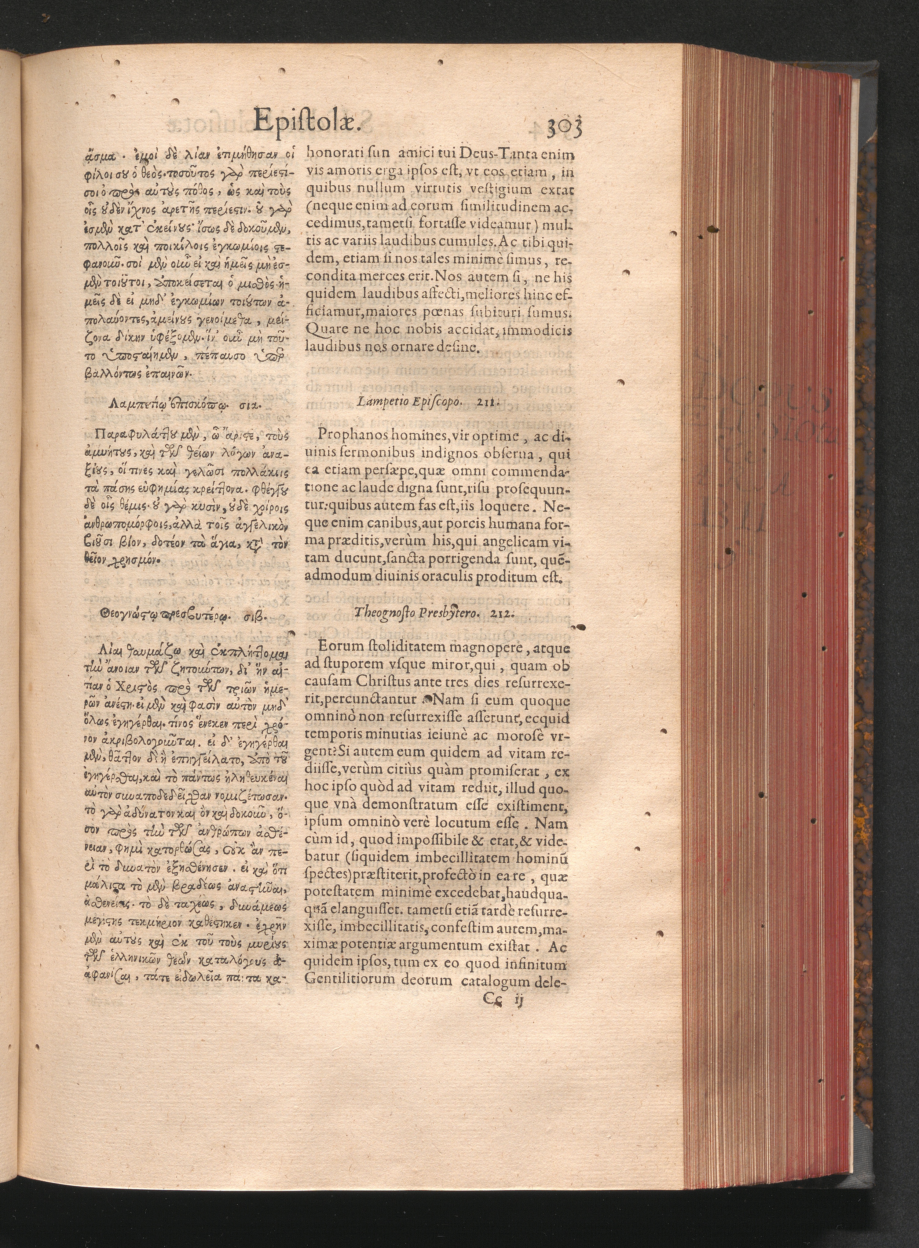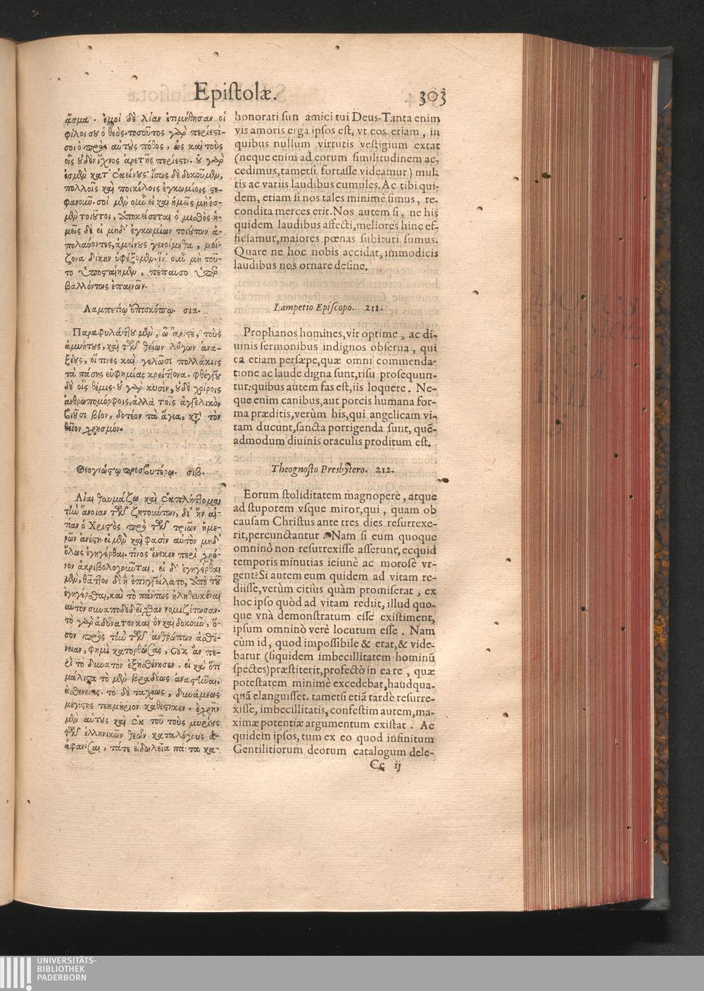 Epistolai tu hagiu Isidōru tu Pēlusiōtu / Quibus è regione accessit latina Clariss. viri Iacobi Billii Prunęi, S. Michaëlis in Eremo quondam Cœnobiarchæ, interpretatio