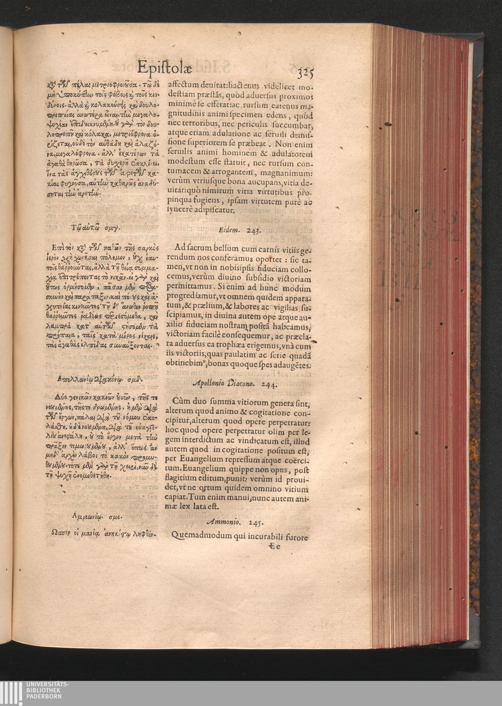 Epistolai tu hagiu Isidōru tu Pēlusiōtu / Quibus è regione accessit latina Clariss. viri Iacobi Billii Prunęi, S. Michaëlis in Eremo quondam Cœnobiarchæ, interpretatio
