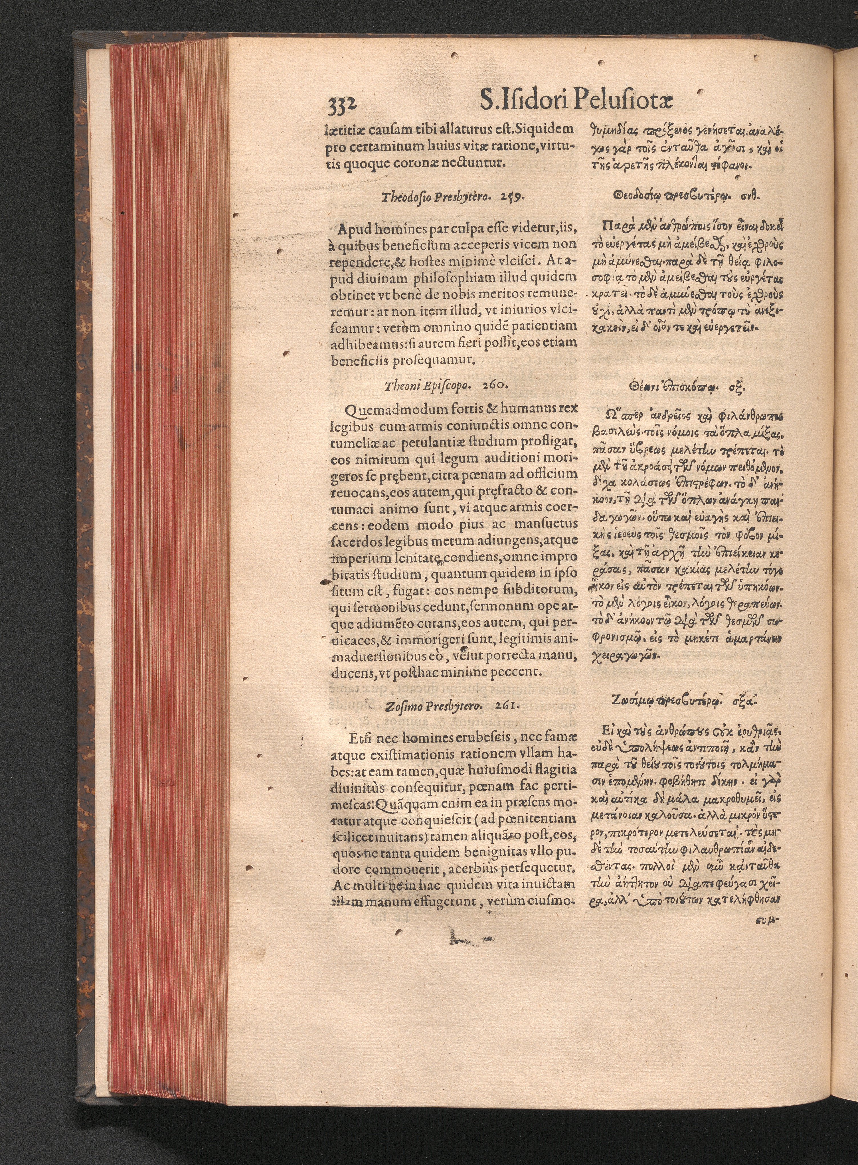 Epistolai tu hagiu Isidōru tu Pēlusiōtu / Quibus è regione accessit latina Clariss. viri Iacobi Billii Prunęi, S. Michaëlis in Eremo quondam Cœnobiarchæ, interpretatio