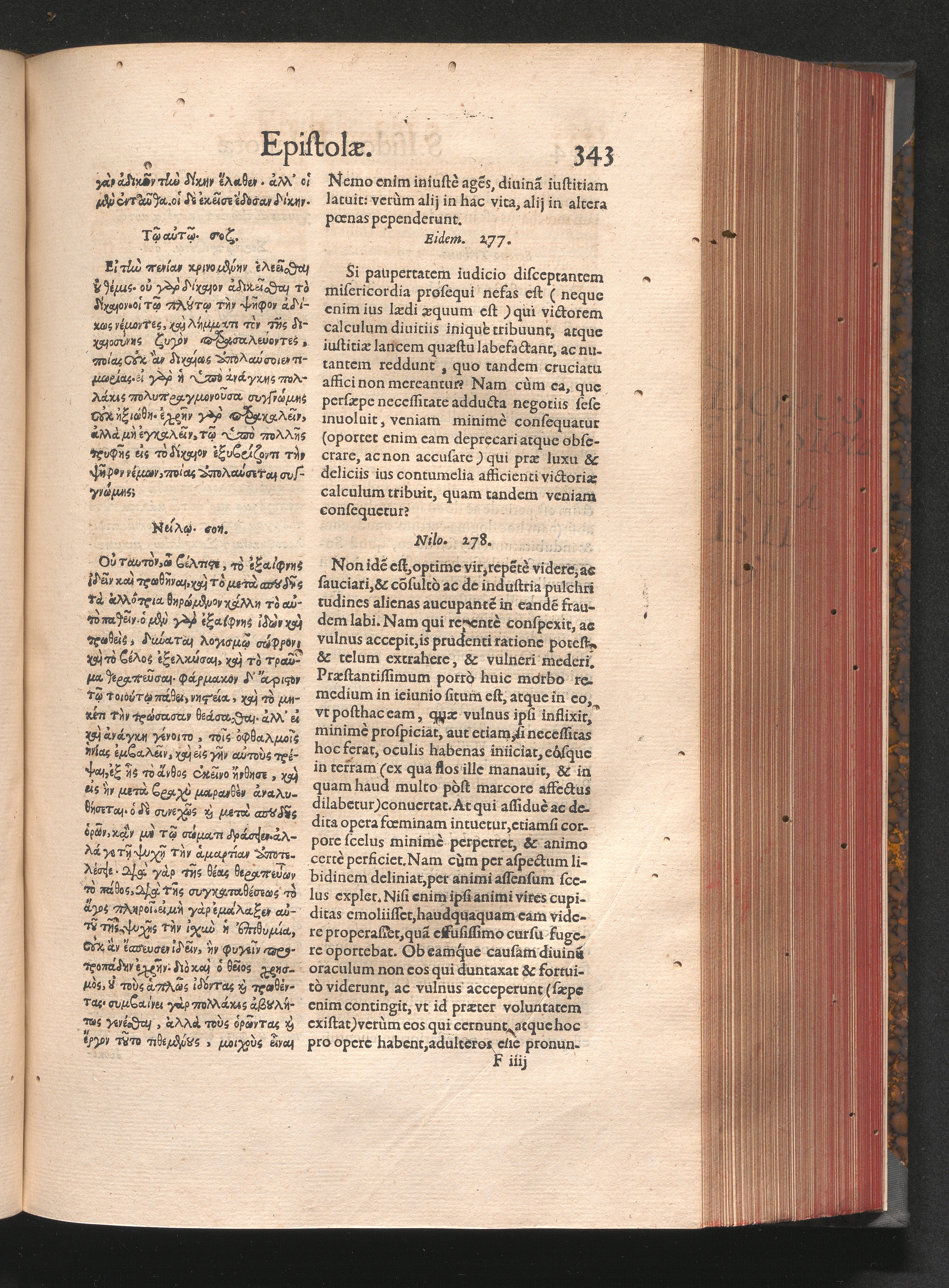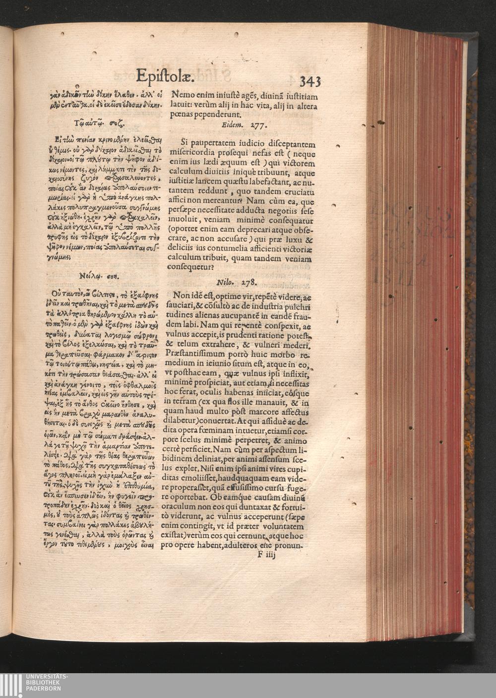 Epistolai tu hagiu Isidōru tu Pēlusiōtu / Quibus è regione accessit latina Clariss. viri Iacobi Billii Prunęi, S. Michaëlis in Eremo quondam Cœnobiarchæ, interpretatio