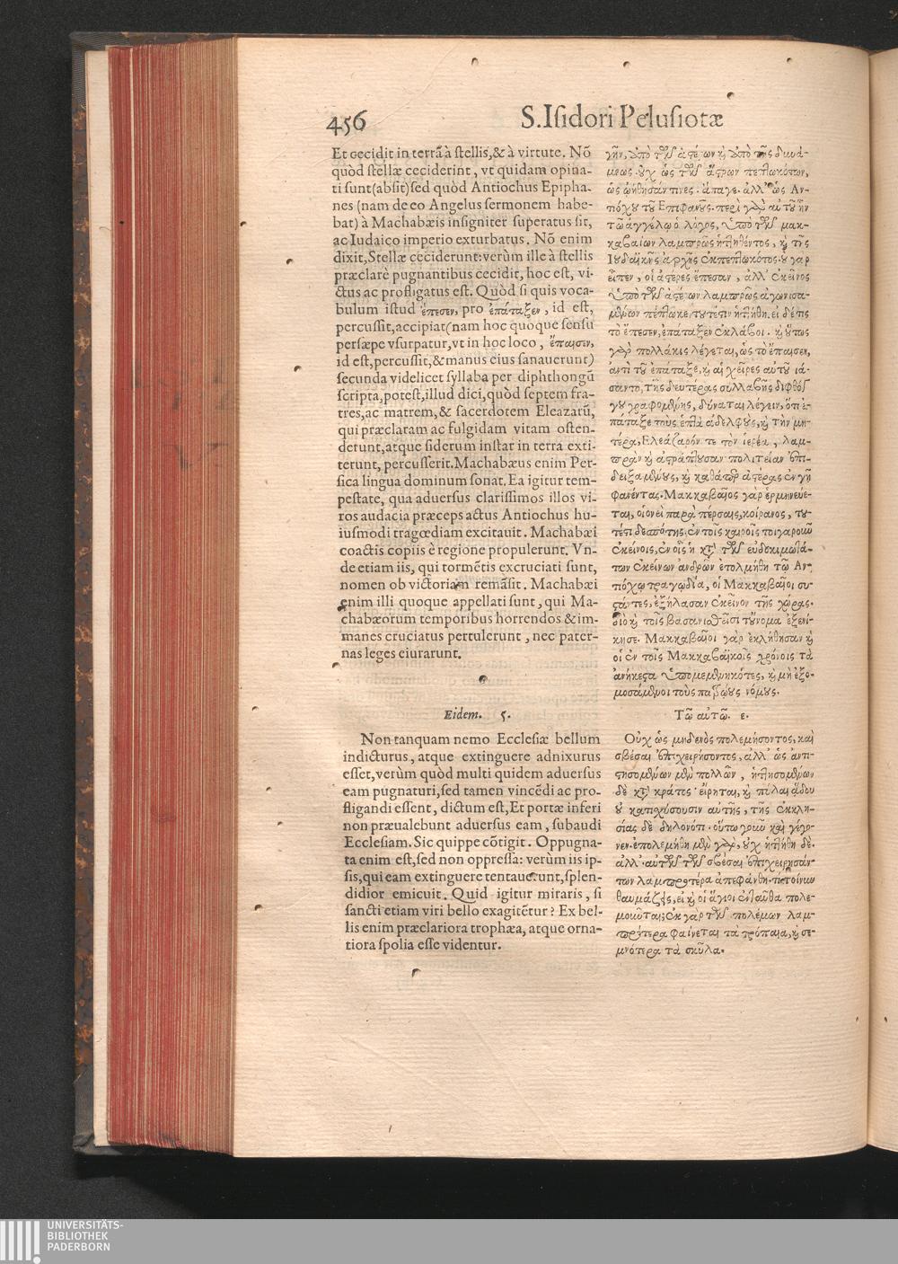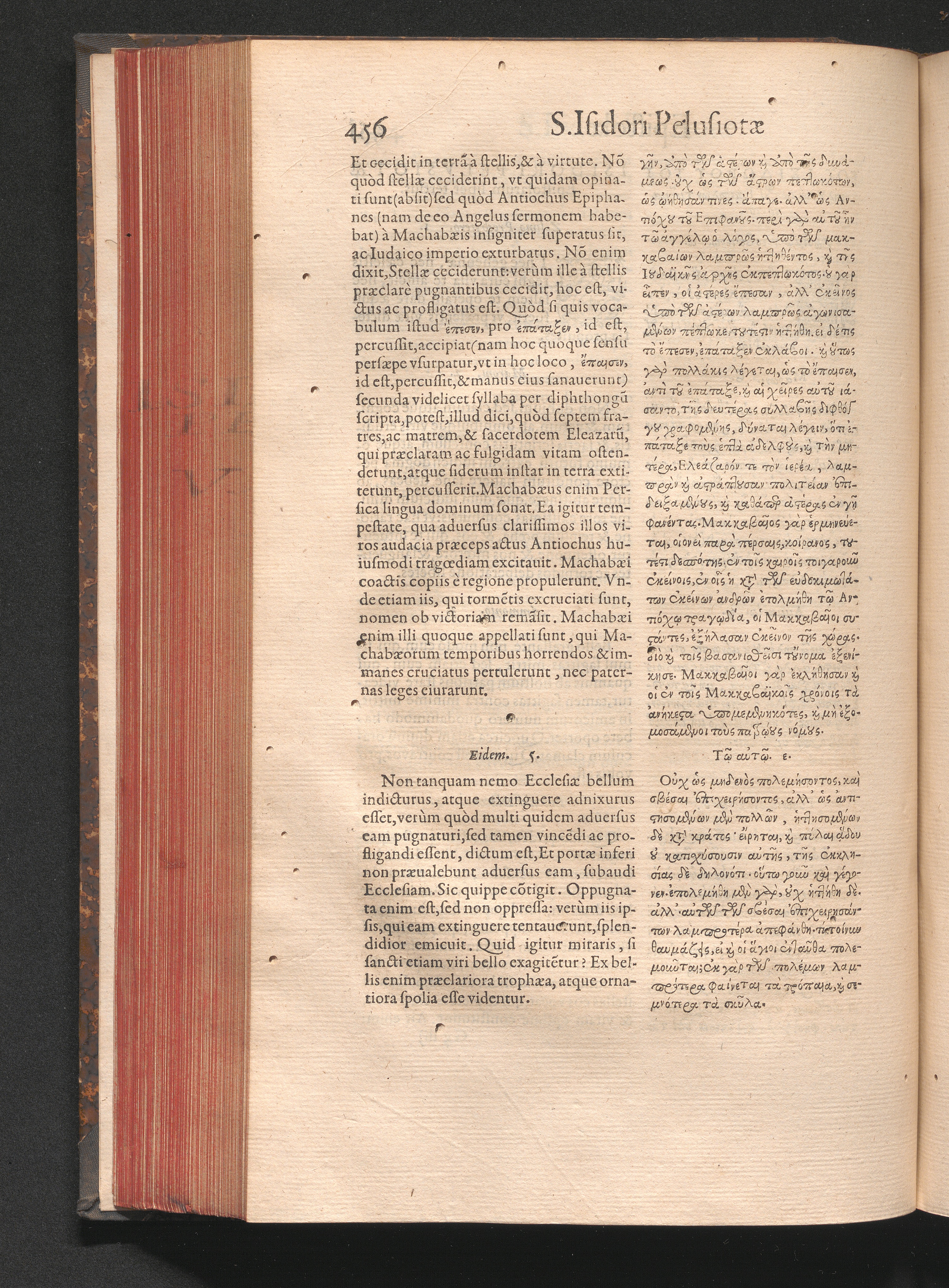 Epistolai tu hagiu Isidōru tu Pēlusiōtu / Quibus è regione accessit latina Clariss. viri Iacobi Billii Prunęi, S. Michaëlis in Eremo quondam Cœnobiarchæ, interpretatio