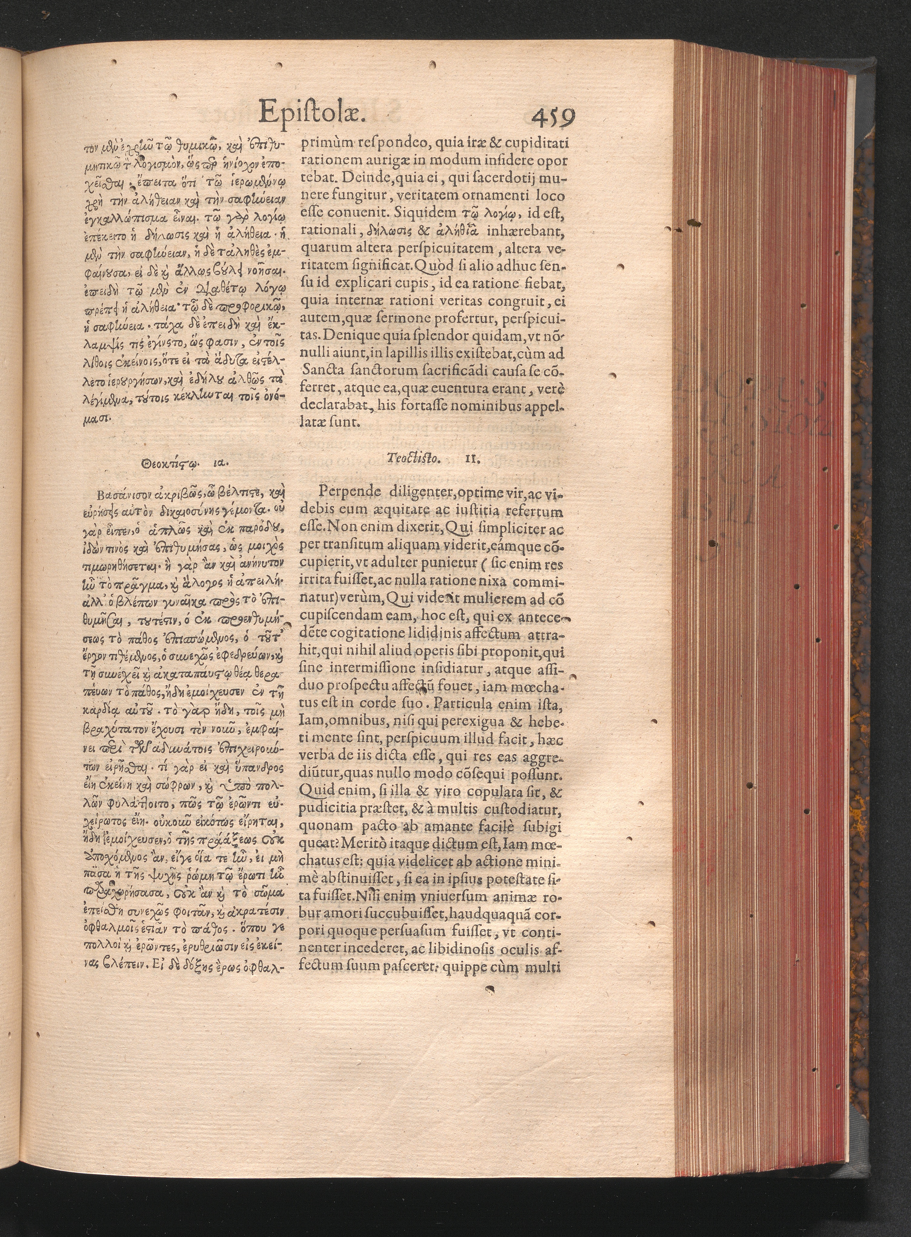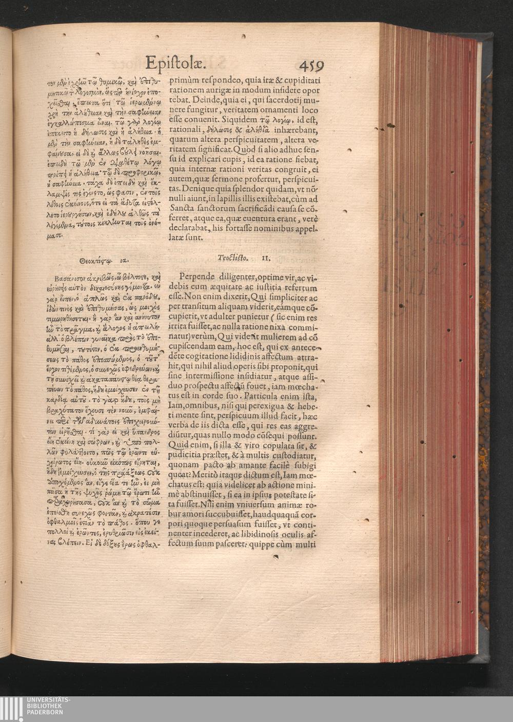 Epistolai tu hagiu Isidōru tu Pēlusiōtu / Quibus è regione accessit latina Clariss. viri Iacobi Billii Prunęi, S. Michaëlis in Eremo quondam Cœnobiarchæ, interpretatio