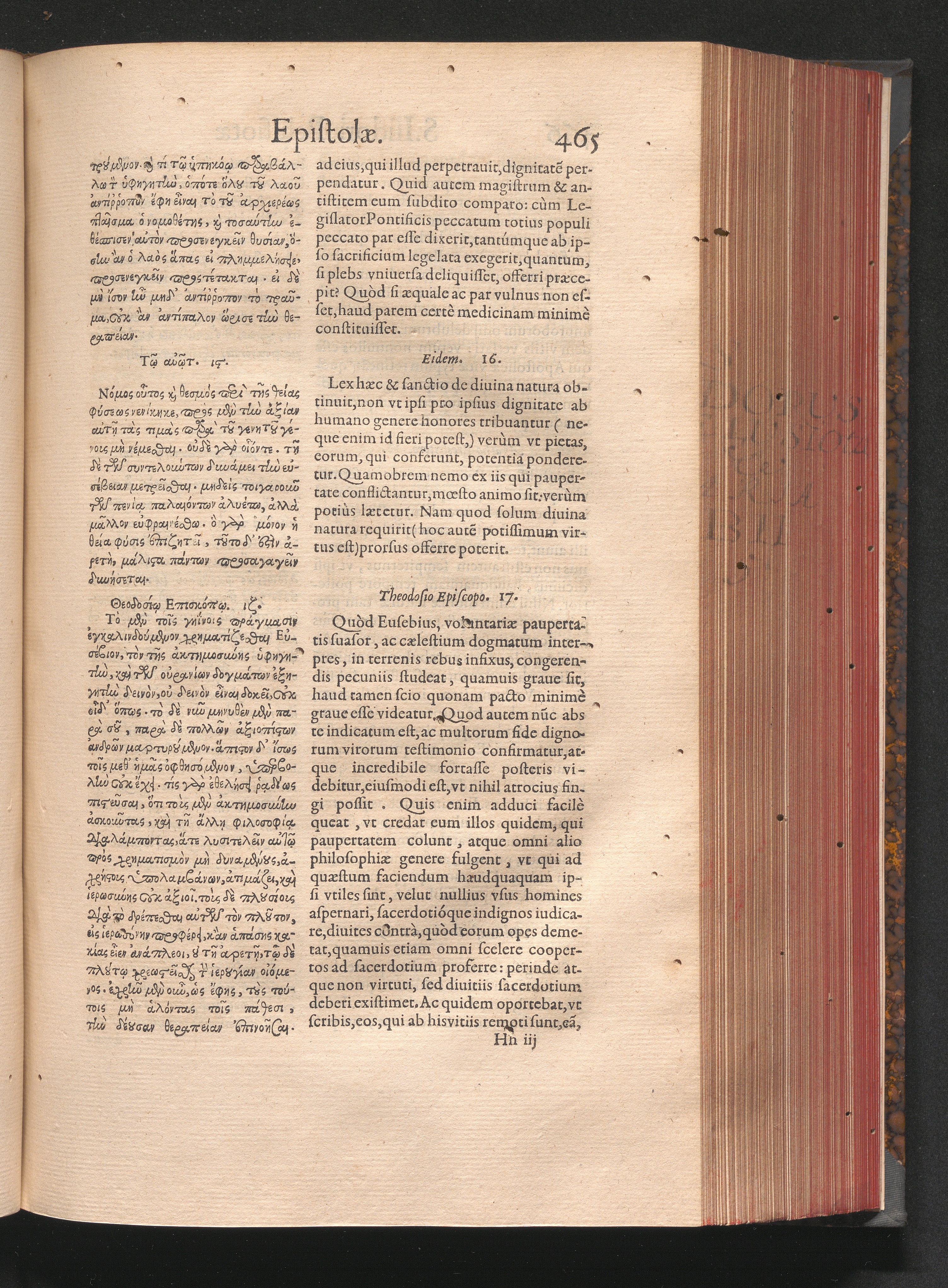Epistolai tu hagiu Isidōru tu Pēlusiōtu / Quibus è regione accessit latina Clariss. viri Iacobi Billii Prunęi, S. Michaëlis in Eremo quondam Cœnobiarchæ, interpretatio