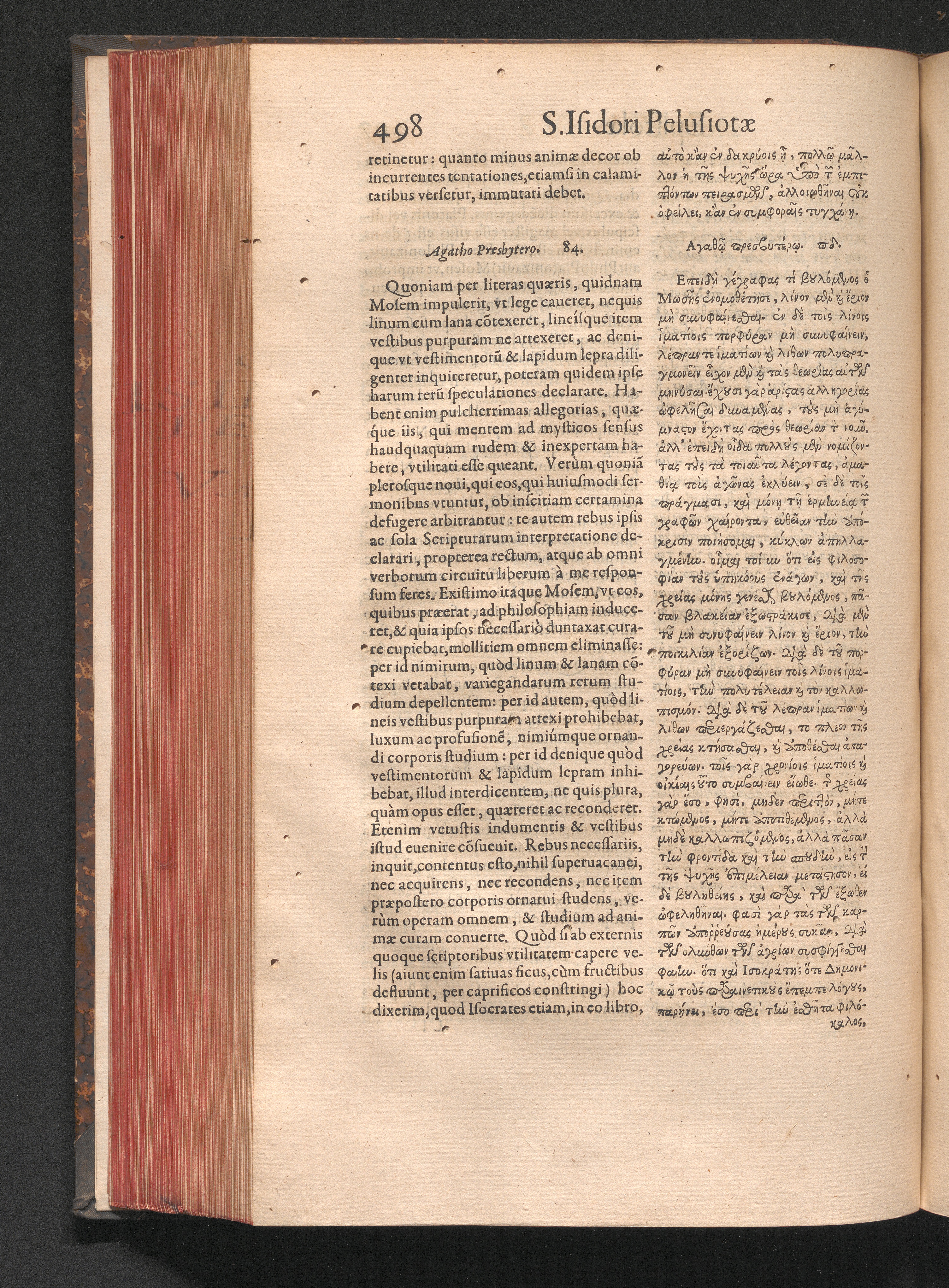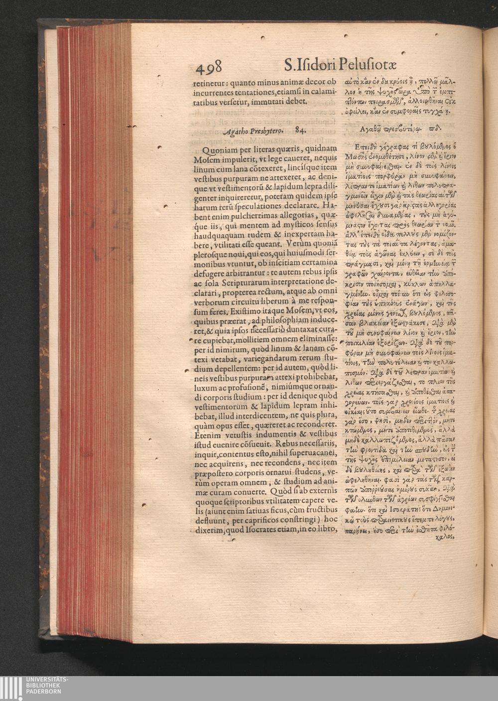 Epistolai tu hagiu Isidōru tu Pēlusiōtu / Quibus è regione accessit latina Clariss. viri Iacobi Billii Prunęi, S. Michaëlis in Eremo quondam Cœnobiarchæ, interpretatio