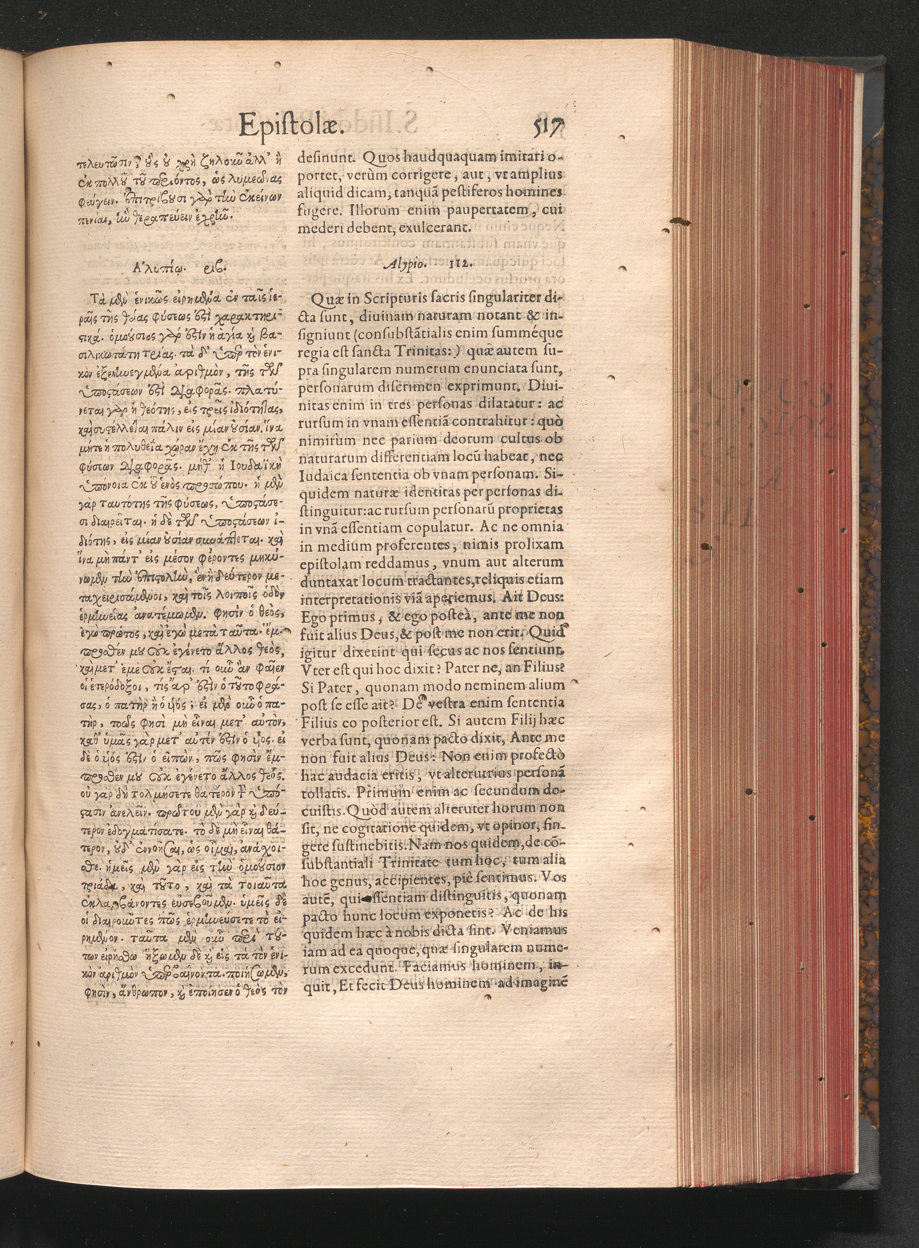 Epistolai tu hagiu Isidōru tu Pēlusiōtu / Quibus è regione accessit latina Clariss. viri Iacobi Billii Prunęi, S. Michaëlis in Eremo quondam Cœnobiarchæ, interpretatio