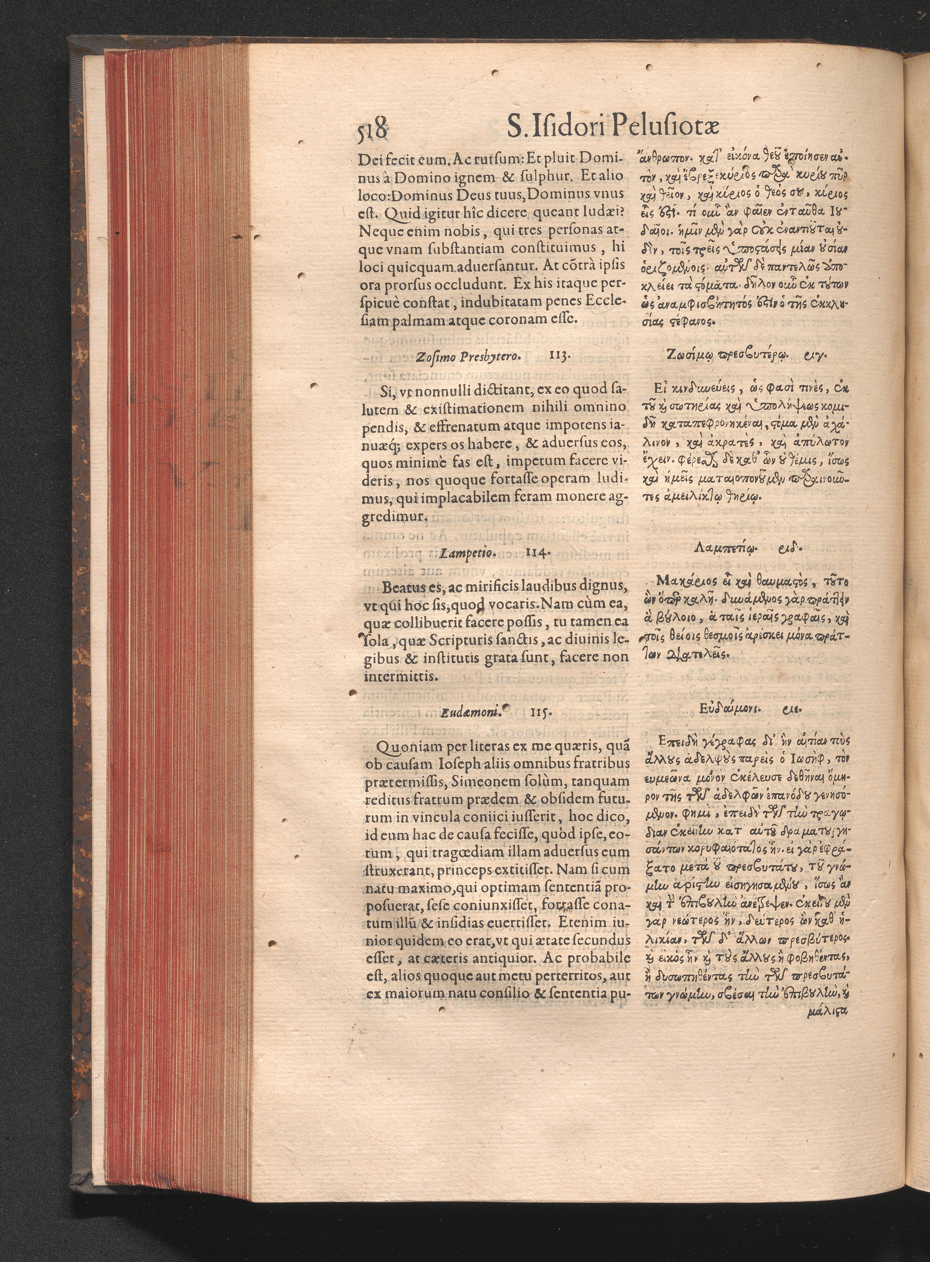Epistolai tu hagiu Isidōru tu Pēlusiōtu / Quibus è regione accessit latina Clariss. viri Iacobi Billii Prunęi, S. Michaëlis in Eremo quondam Cœnobiarchæ, interpretatio