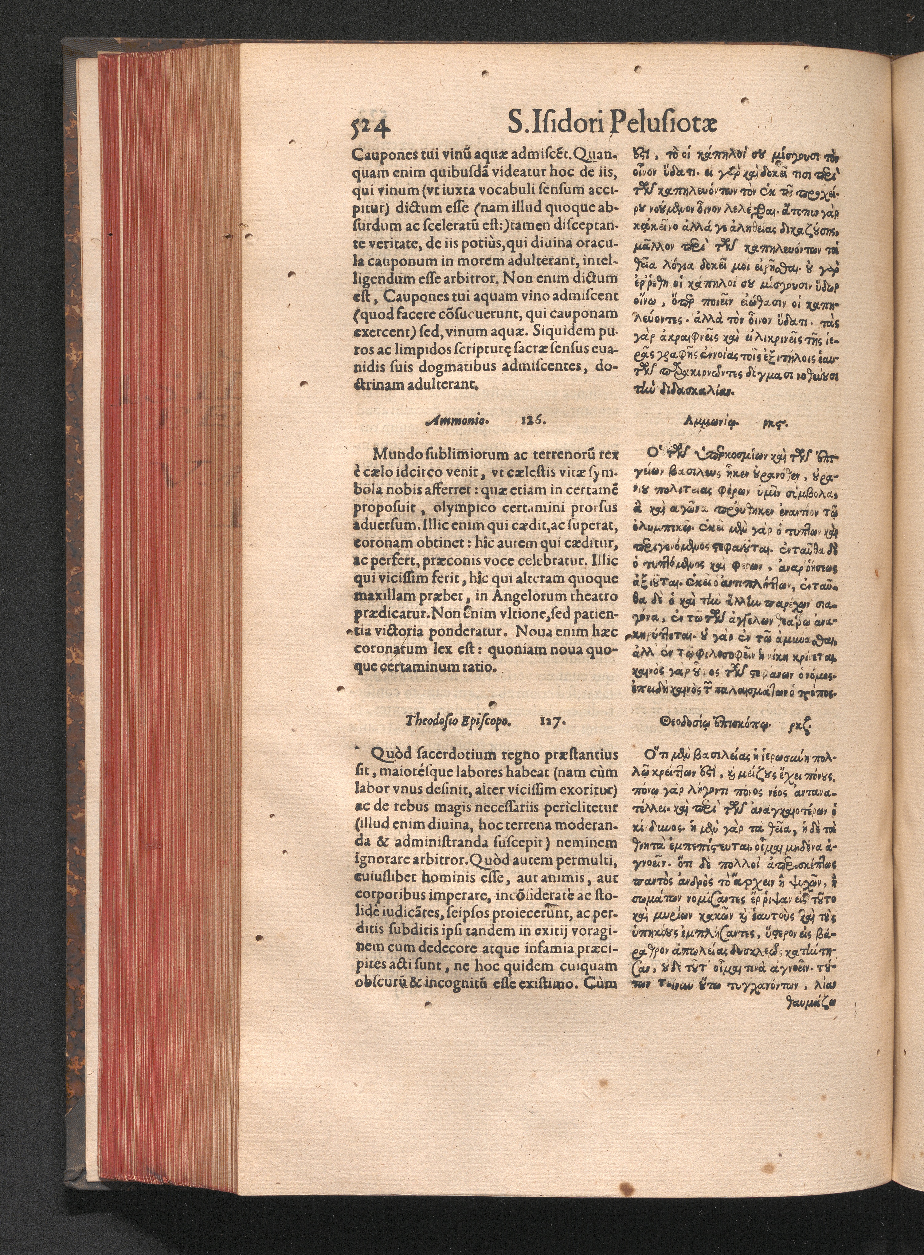 Epistolai tu hagiu Isidōru tu Pēlusiōtu / Quibus è regione accessit latina Clariss. viri Iacobi Billii Prunęi, S. Michaëlis in Eremo quondam Cœnobiarchæ, interpretatio