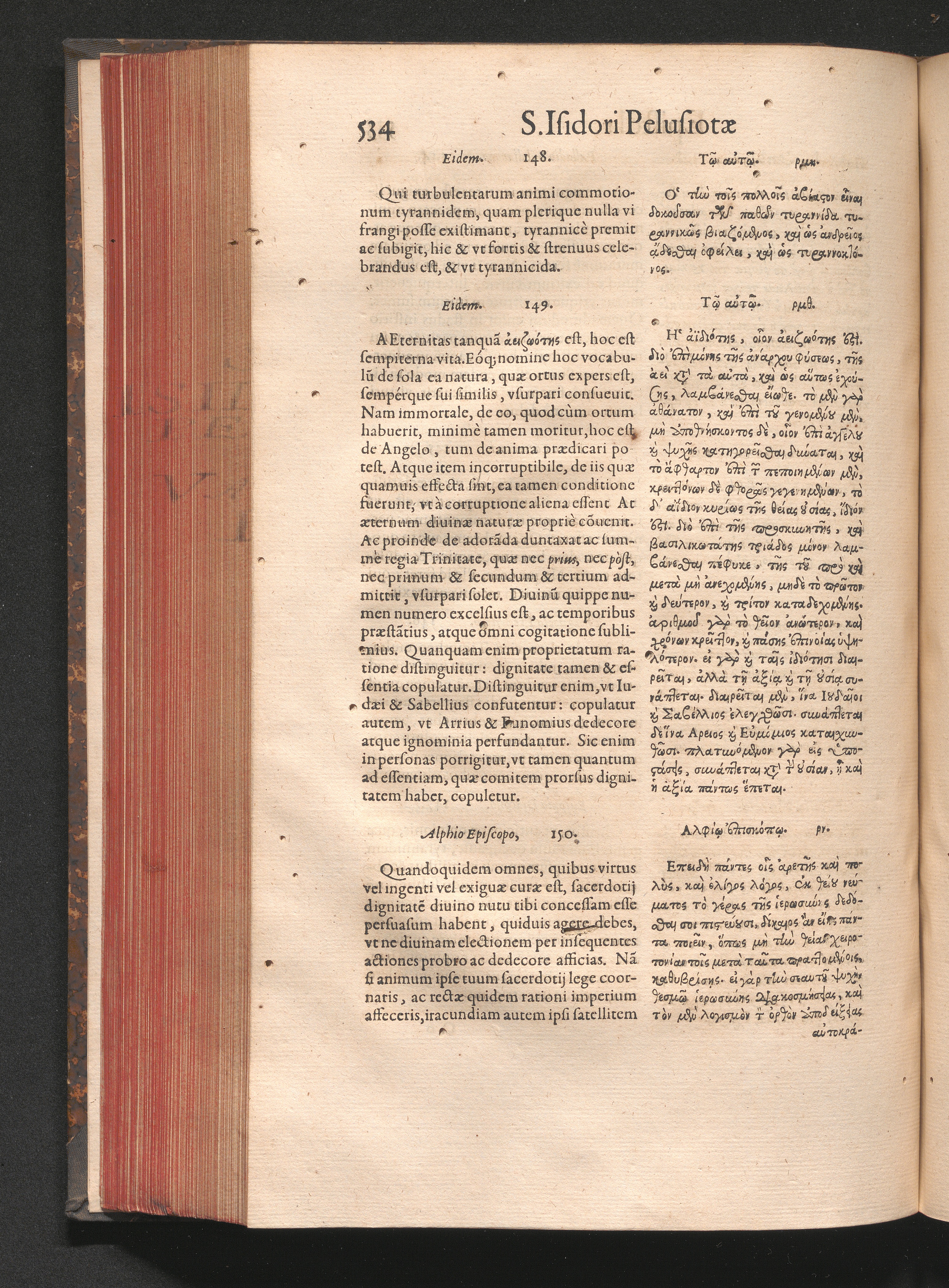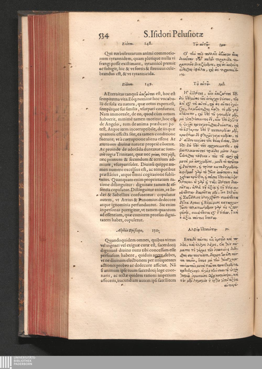 Epistolai tu hagiu Isidōru tu Pēlusiōtu / Quibus è regione accessit latina Clariss. viri Iacobi Billii Prunęi, S. Michaëlis in Eremo quondam Cœnobiarchæ, interpretatio