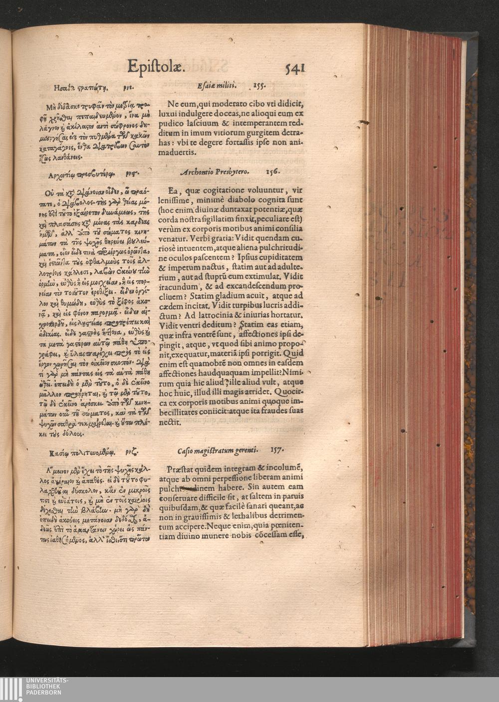 Epistolai tu hagiu Isidōru tu Pēlusiōtu / Quibus è regione accessit latina Clariss. viri Iacobi Billii Prunęi, S. Michaëlis in Eremo quondam Cœnobiarchæ, interpretatio