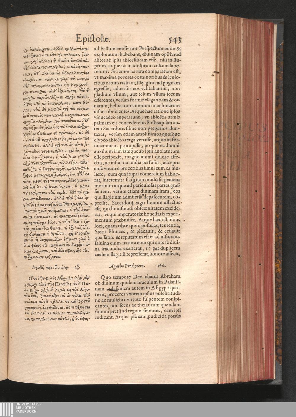 Epistolai tu hagiu Isidōru tu Pēlusiōtu / Quibus è regione accessit latina Clariss. viri Iacobi Billii Prunęi, S. Michaëlis in Eremo quondam Cœnobiarchæ, interpretatio