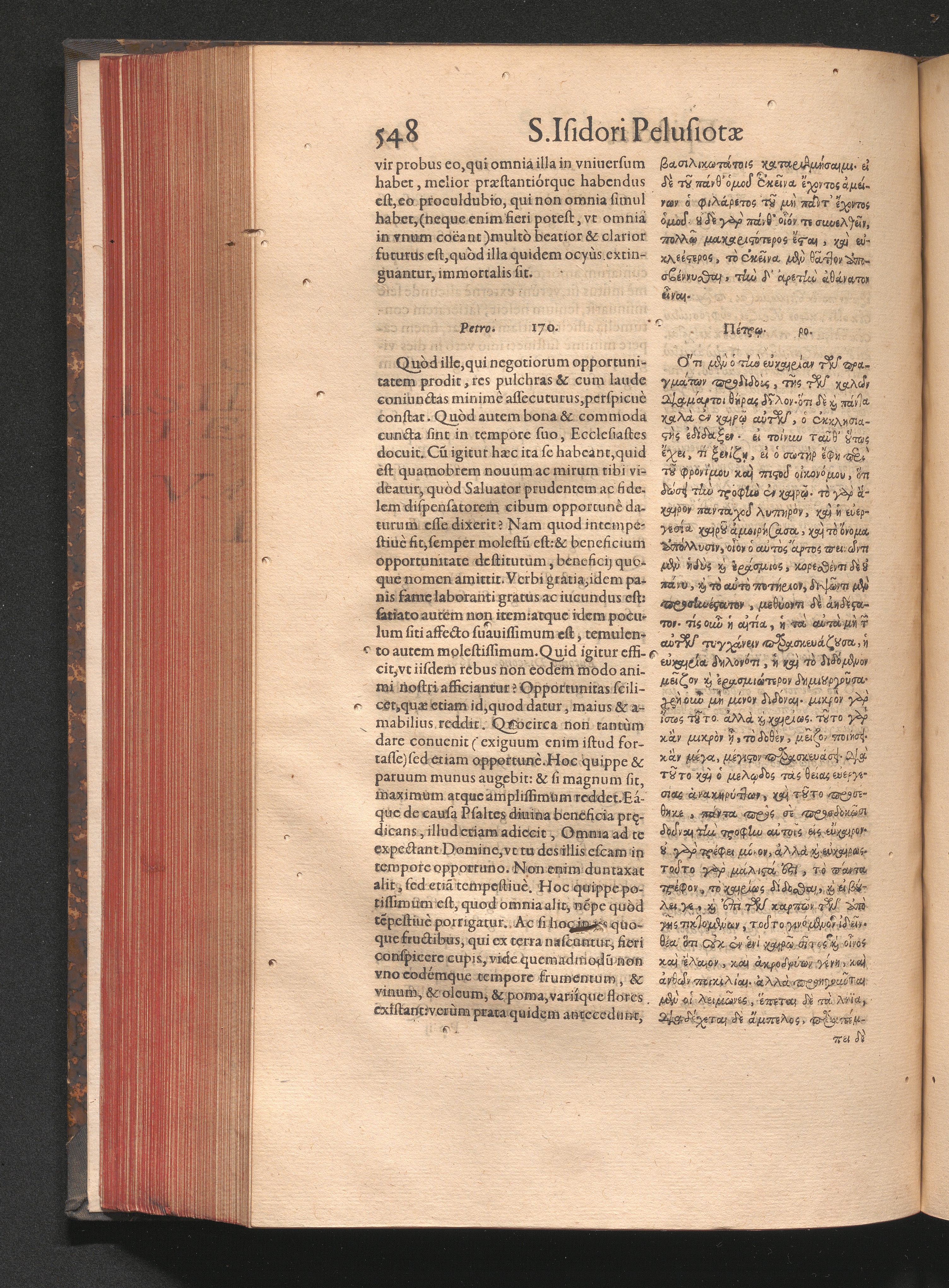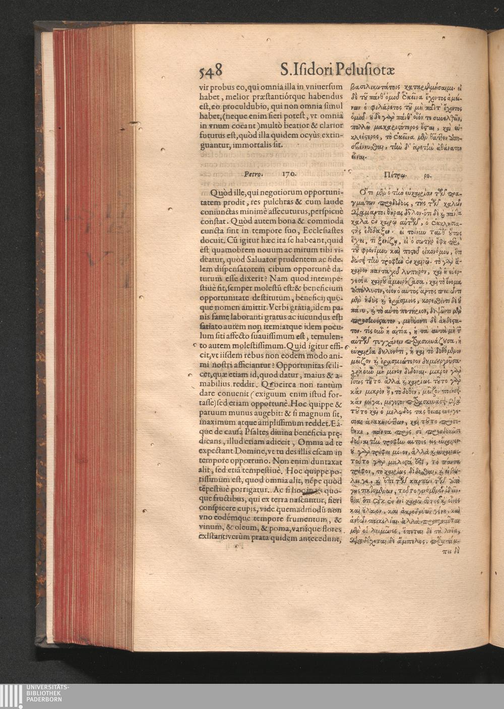 Epistolai tu hagiu Isidōru tu Pēlusiōtu / Quibus è regione accessit latina Clariss. viri Iacobi Billii Prunęi, S. Michaëlis in Eremo quondam Cœnobiarchæ, interpretatio