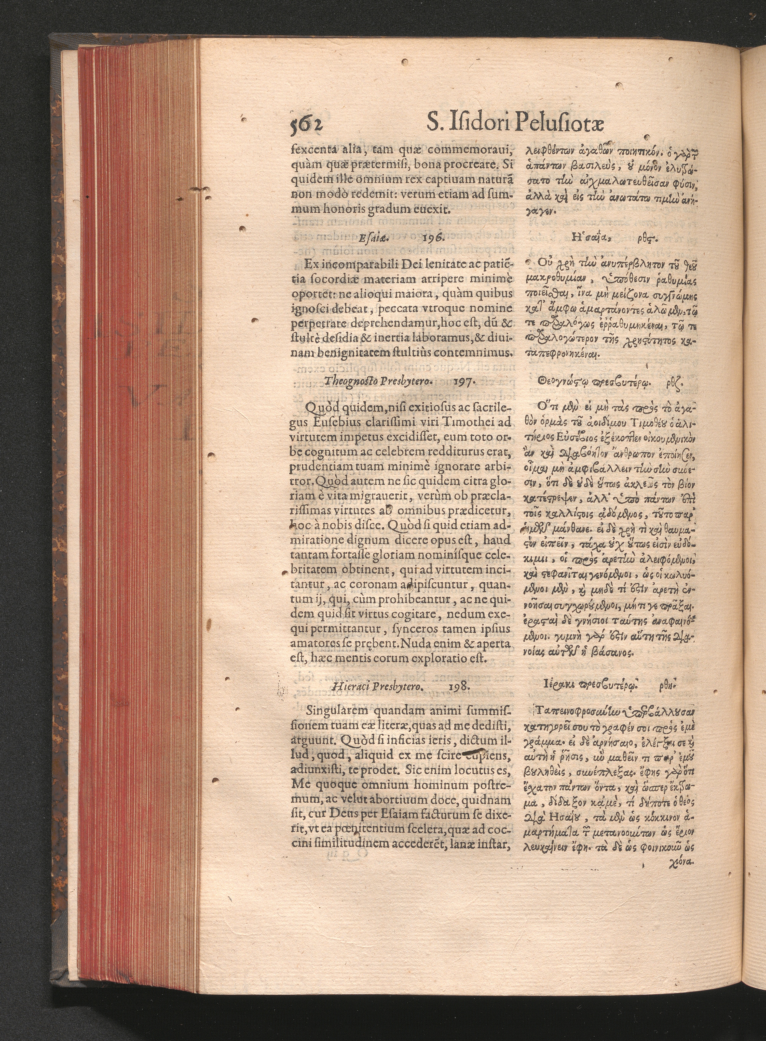 Epistolai tu hagiu Isidōru tu Pēlusiōtu / Quibus è regione accessit latina Clariss. viri Iacobi Billii Prunęi, S. Michaëlis in Eremo quondam Cœnobiarchæ, interpretatio