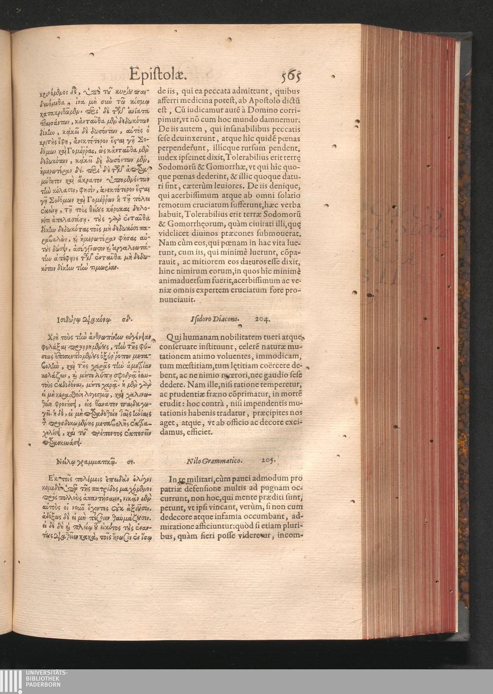 Epistolai tu hagiu Isidōru tu Pēlusiōtu / Quibus è regione accessit latina Clariss. viri Iacobi Billii Prunęi, S. Michaëlis in Eremo quondam Cœnobiarchæ, interpretatio