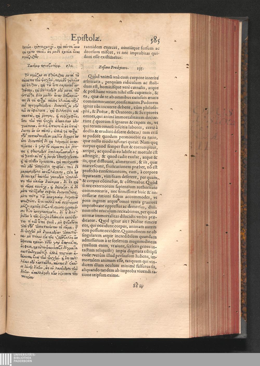 Epistolai tu hagiu Isidōru tu Pēlusiōtu / Quibus è regione accessit latina Clariss. viri Iacobi Billii Prunęi, S. Michaëlis in Eremo quondam Cœnobiarchæ, interpretatio