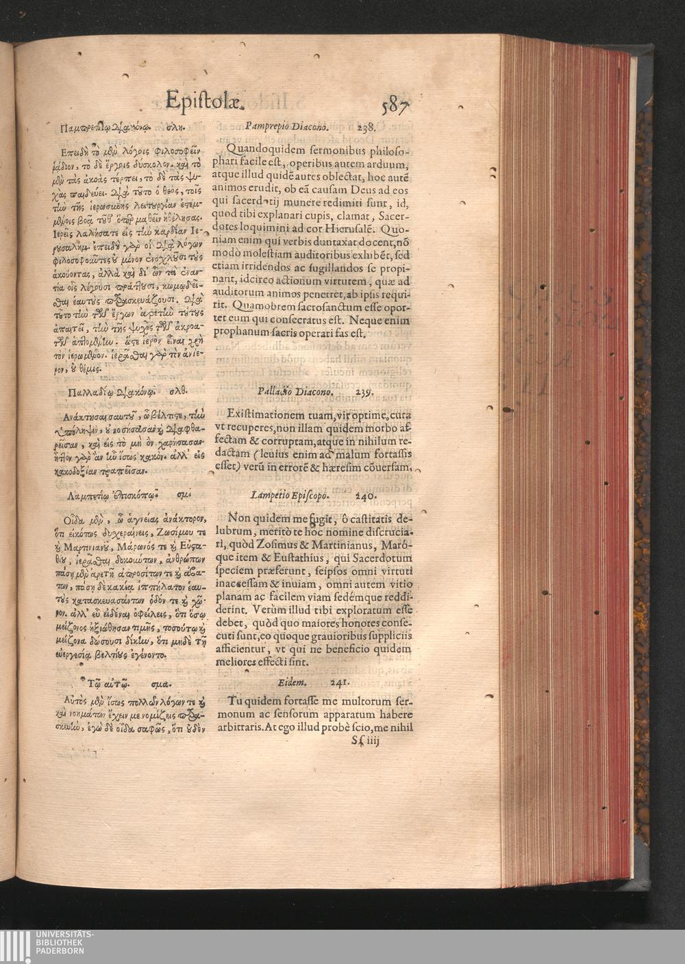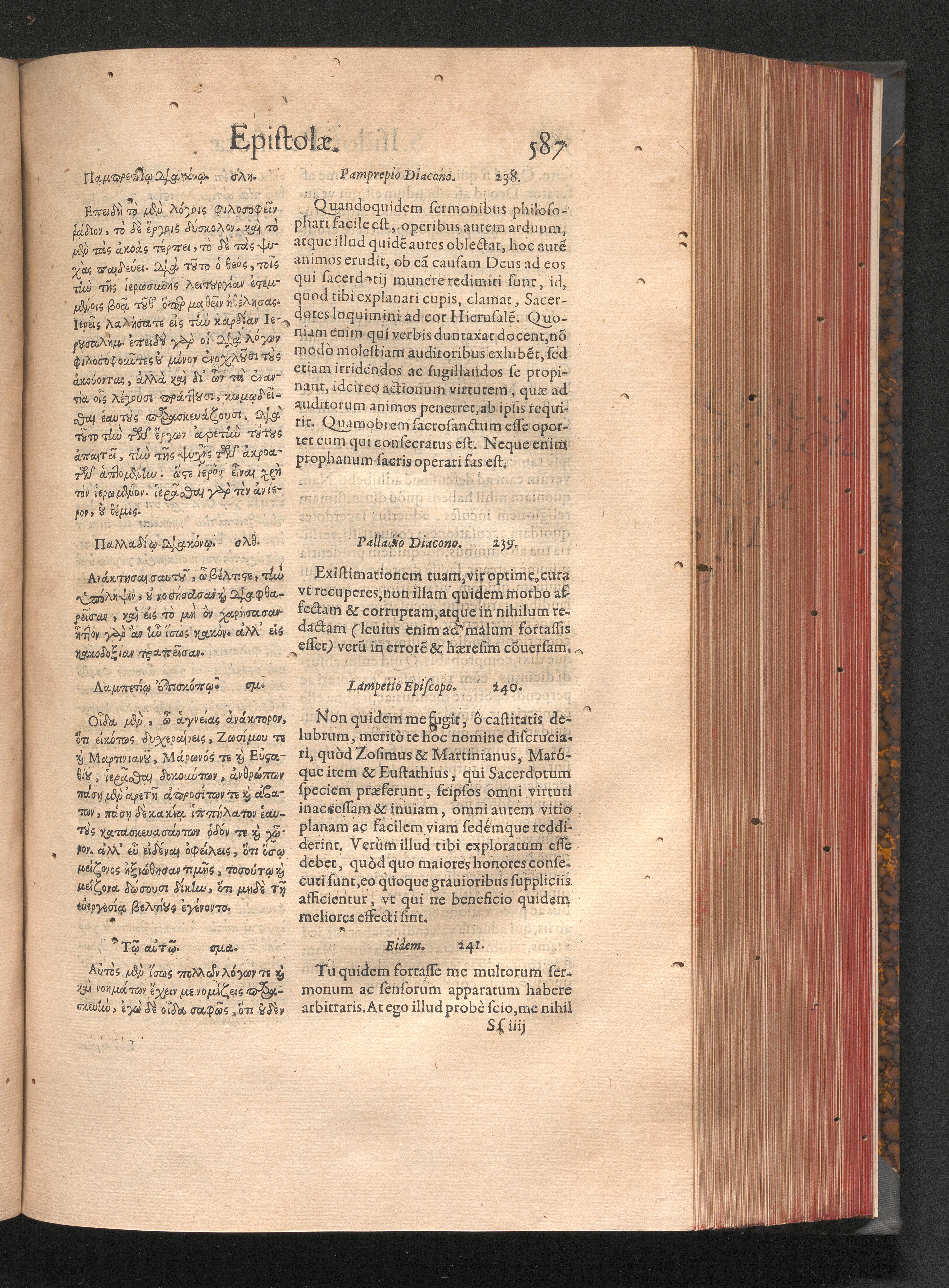 Epistolai tu hagiu Isidōru tu Pēlusiōtu / Quibus è regione accessit latina Clariss. viri Iacobi Billii Prunęi, S. Michaëlis in Eremo quondam Cœnobiarchæ, interpretatio