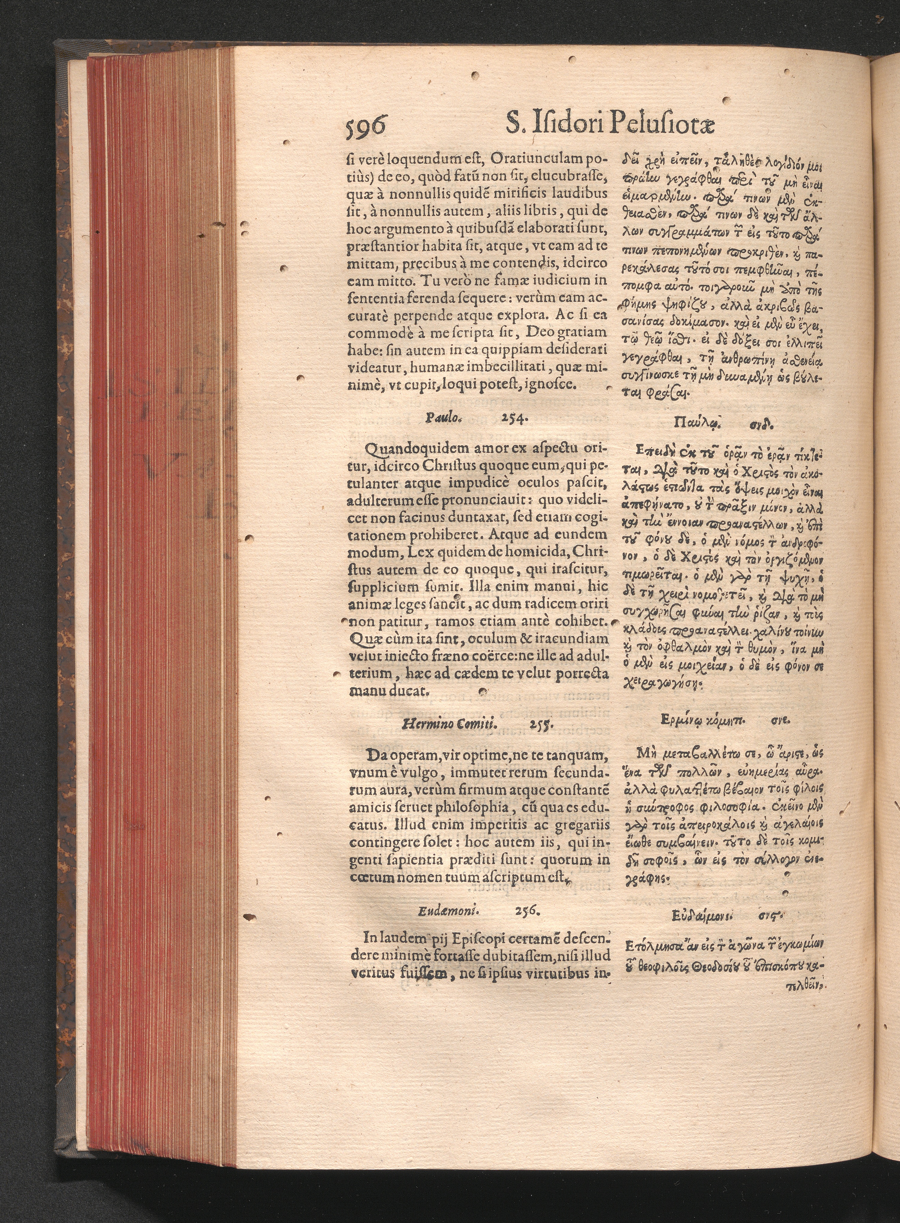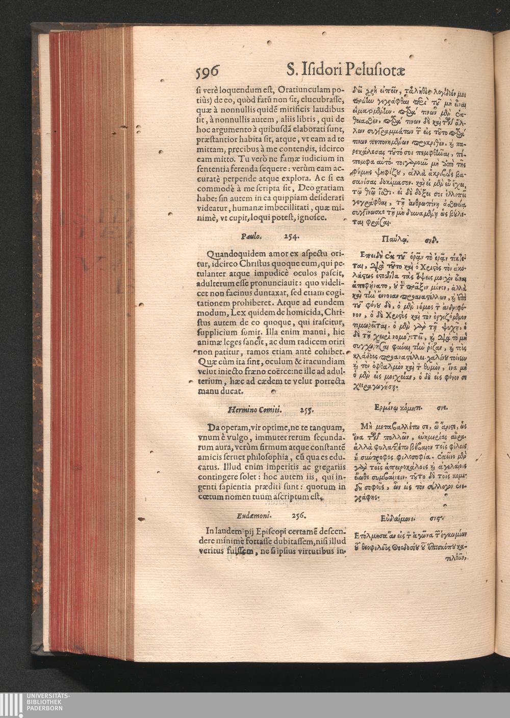 Epistolai tu hagiu Isidōru tu Pēlusiōtu / Quibus è regione accessit latina Clariss. viri Iacobi Billii Prunęi, S. Michaëlis in Eremo quondam Cœnobiarchæ, interpretatio