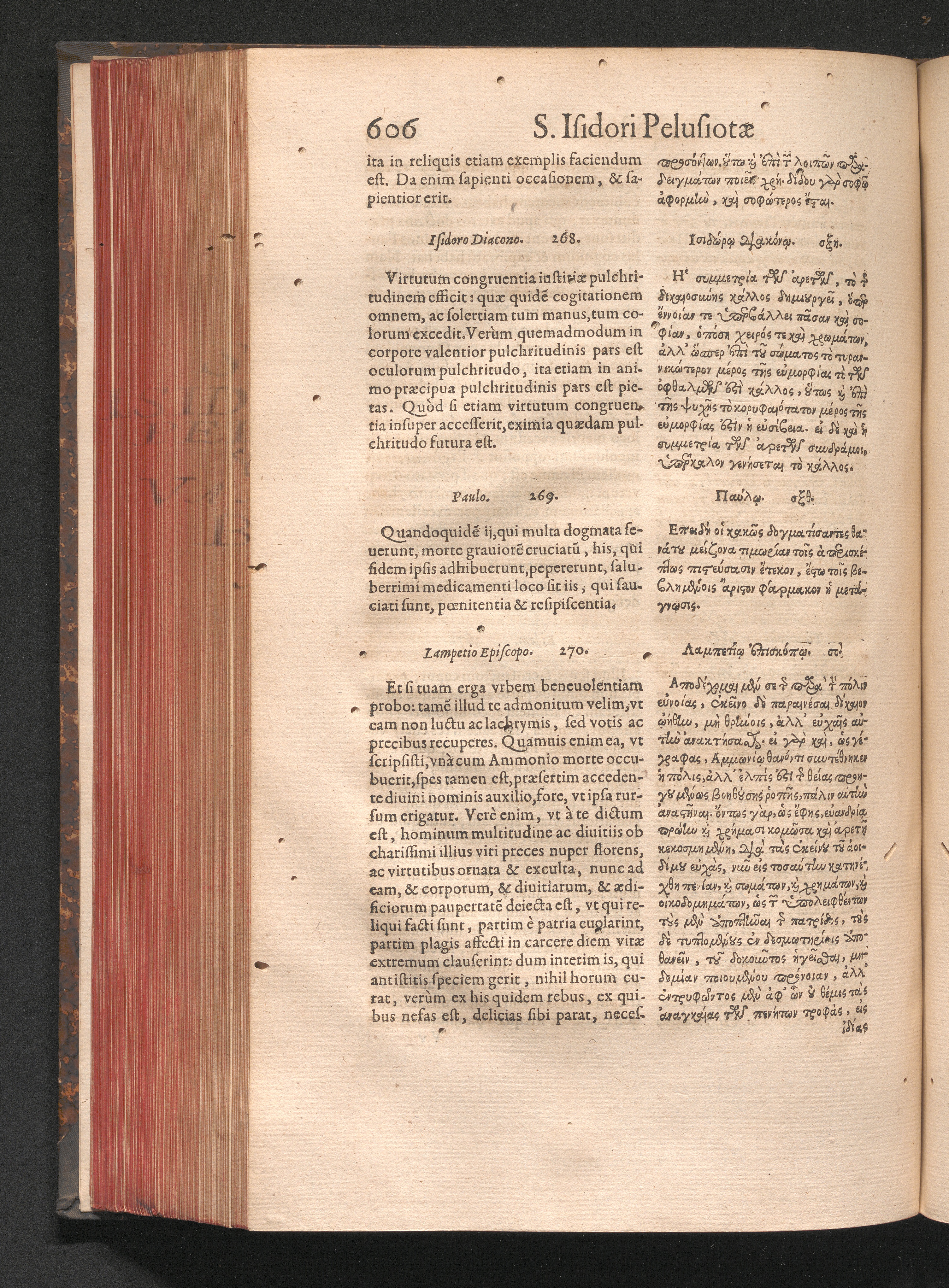 Epistolai tu hagiu Isidōru tu Pēlusiōtu / Quibus è regione accessit latina Clariss. viri Iacobi Billii Prunęi, S. Michaëlis in Eremo quondam Cœnobiarchæ, interpretatio