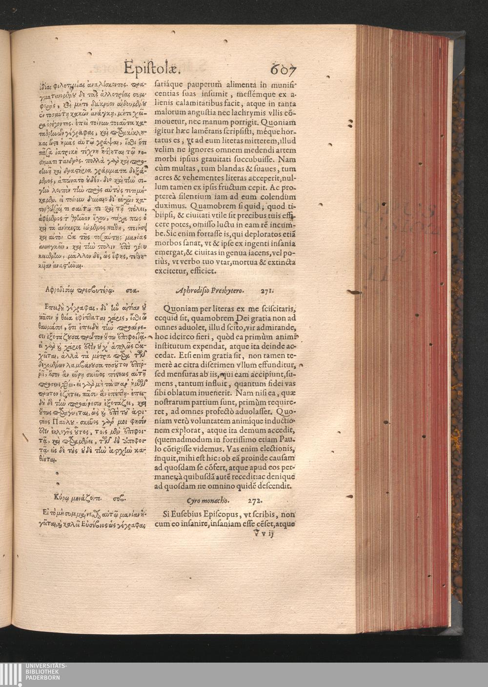Epistolai tu hagiu Isidōru tu Pēlusiōtu / Quibus è regione accessit latina Clariss. viri Iacobi Billii Prunęi, S. Michaëlis in Eremo quondam Cœnobiarchæ, interpretatio