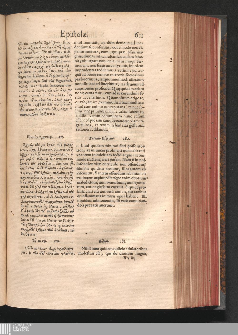 Epistolai tu hagiu Isidōru tu Pēlusiōtu / Quibus è regione accessit latina Clariss. viri Iacobi Billii Prunęi, S. Michaëlis in Eremo quondam Cœnobiarchæ, interpretatio