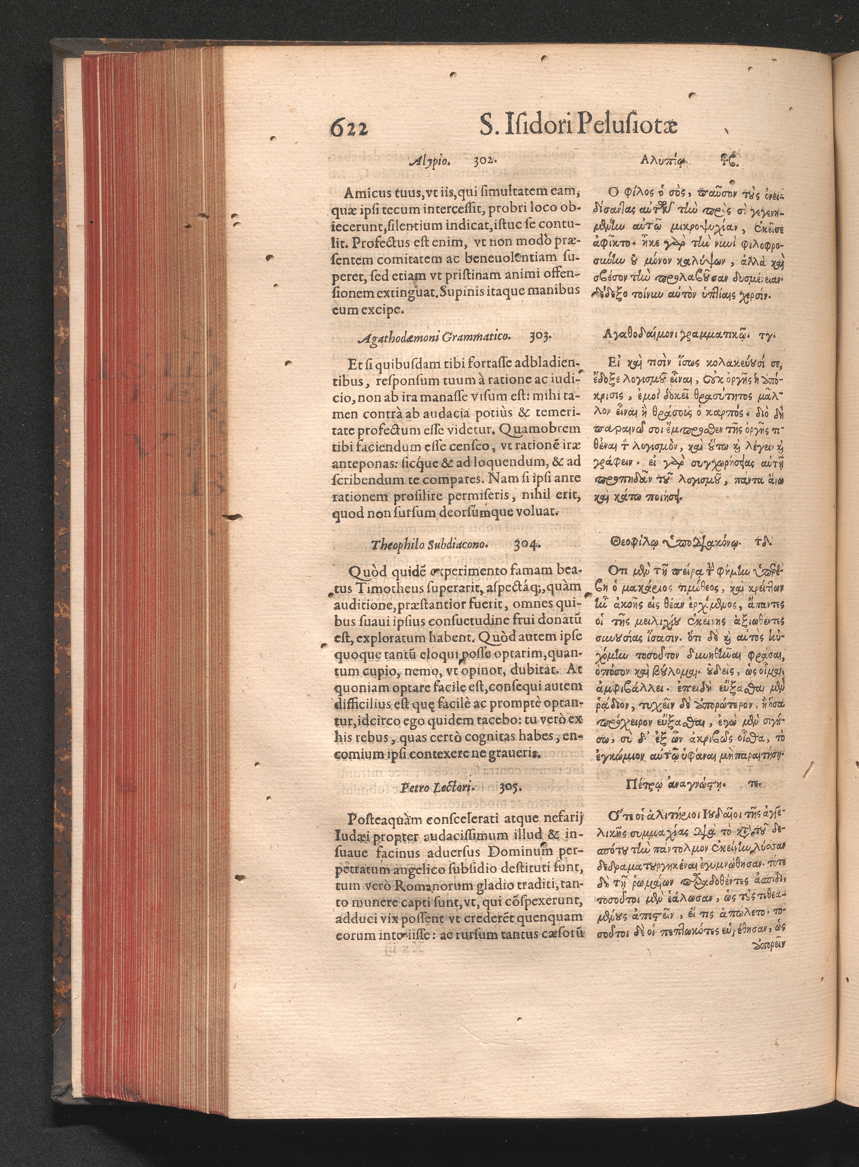 Epistolai tu hagiu Isidōru tu Pēlusiōtu / Quibus è regione accessit latina Clariss. viri Iacobi Billii Prunęi, S. Michaëlis in Eremo quondam Cœnobiarchæ, interpretatio