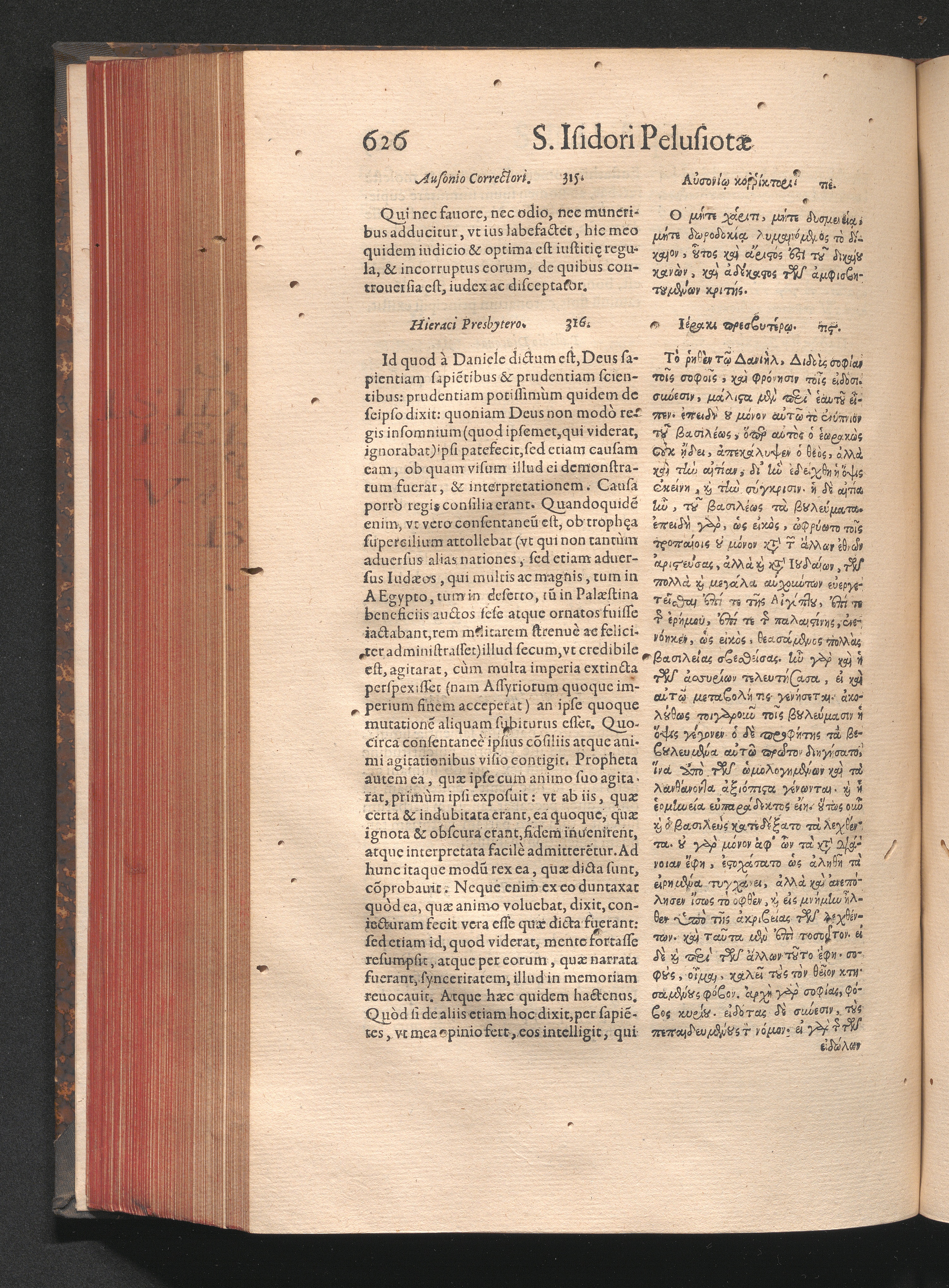 Epistolai tu hagiu Isidōru tu Pēlusiōtu / Quibus è regione accessit latina Clariss. viri Iacobi Billii Prunęi, S. Michaëlis in Eremo quondam Cœnobiarchæ, interpretatio