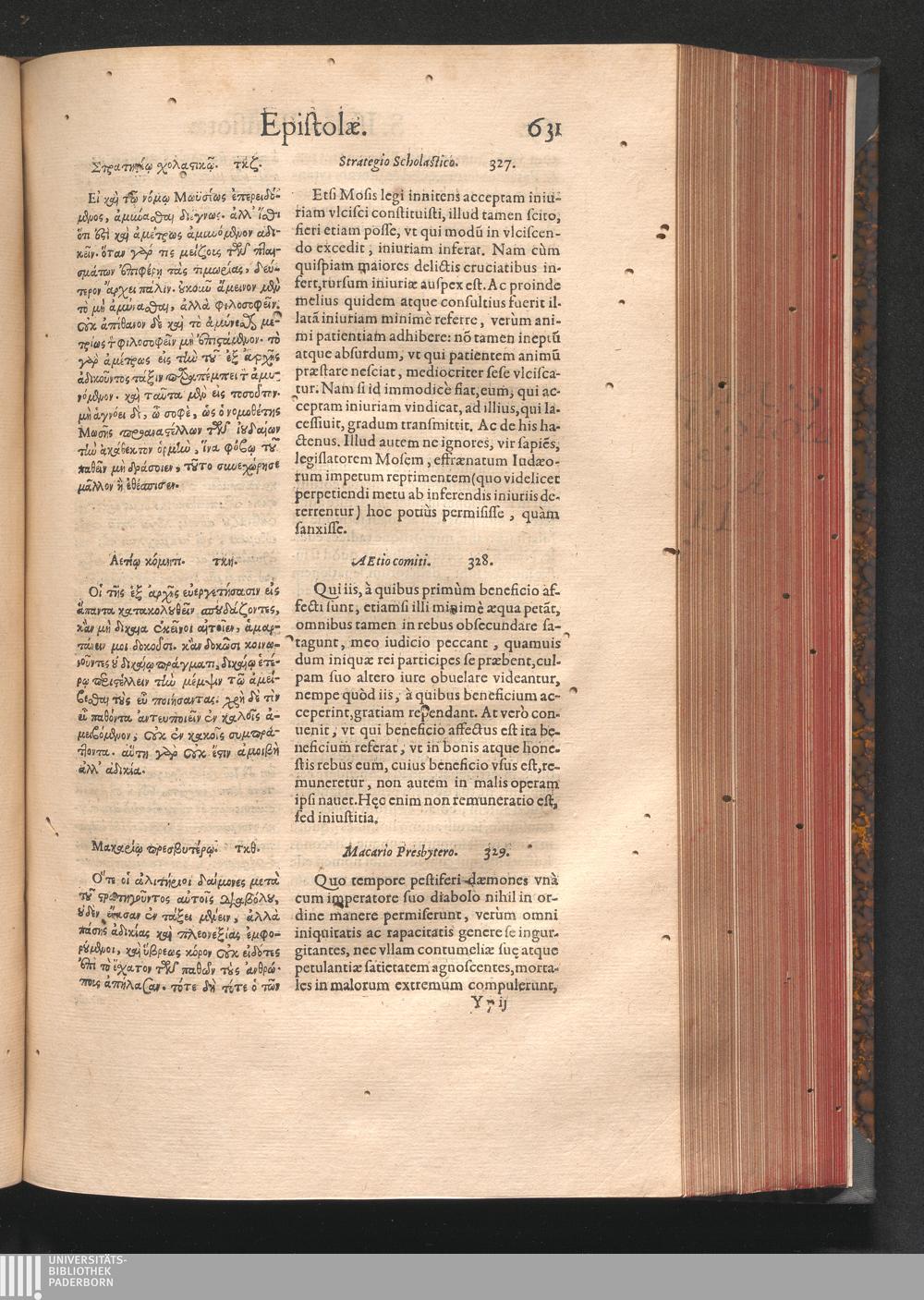 Epistolai tu hagiu Isidōru tu Pēlusiōtu / Quibus è regione accessit latina Clariss. viri Iacobi Billii Prunęi, S. Michaëlis in Eremo quondam Cœnobiarchæ, interpretatio
