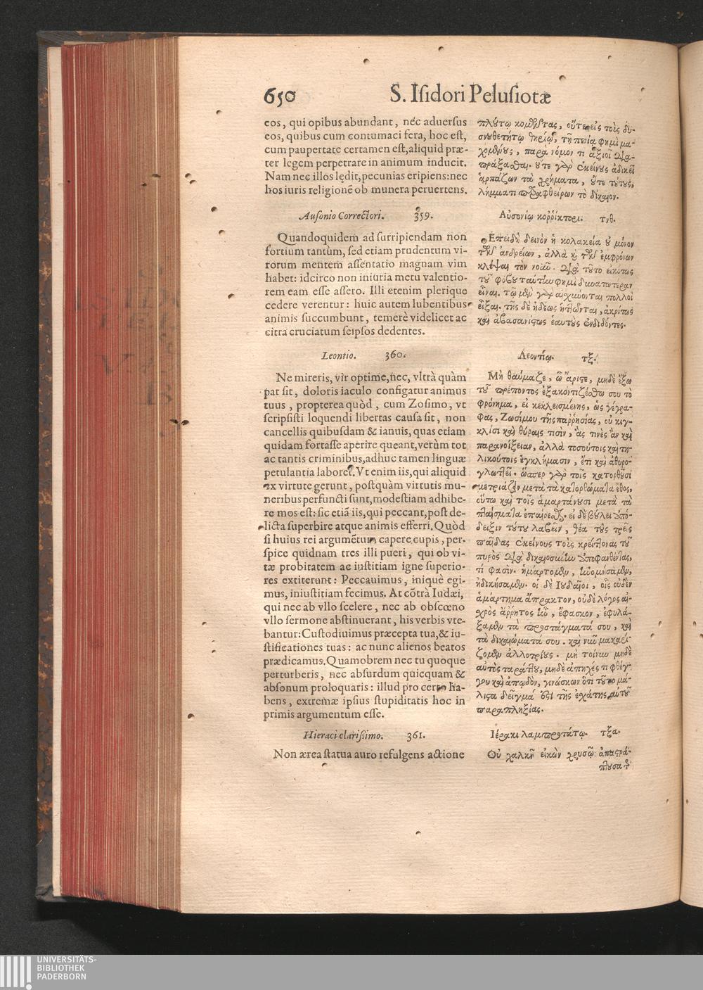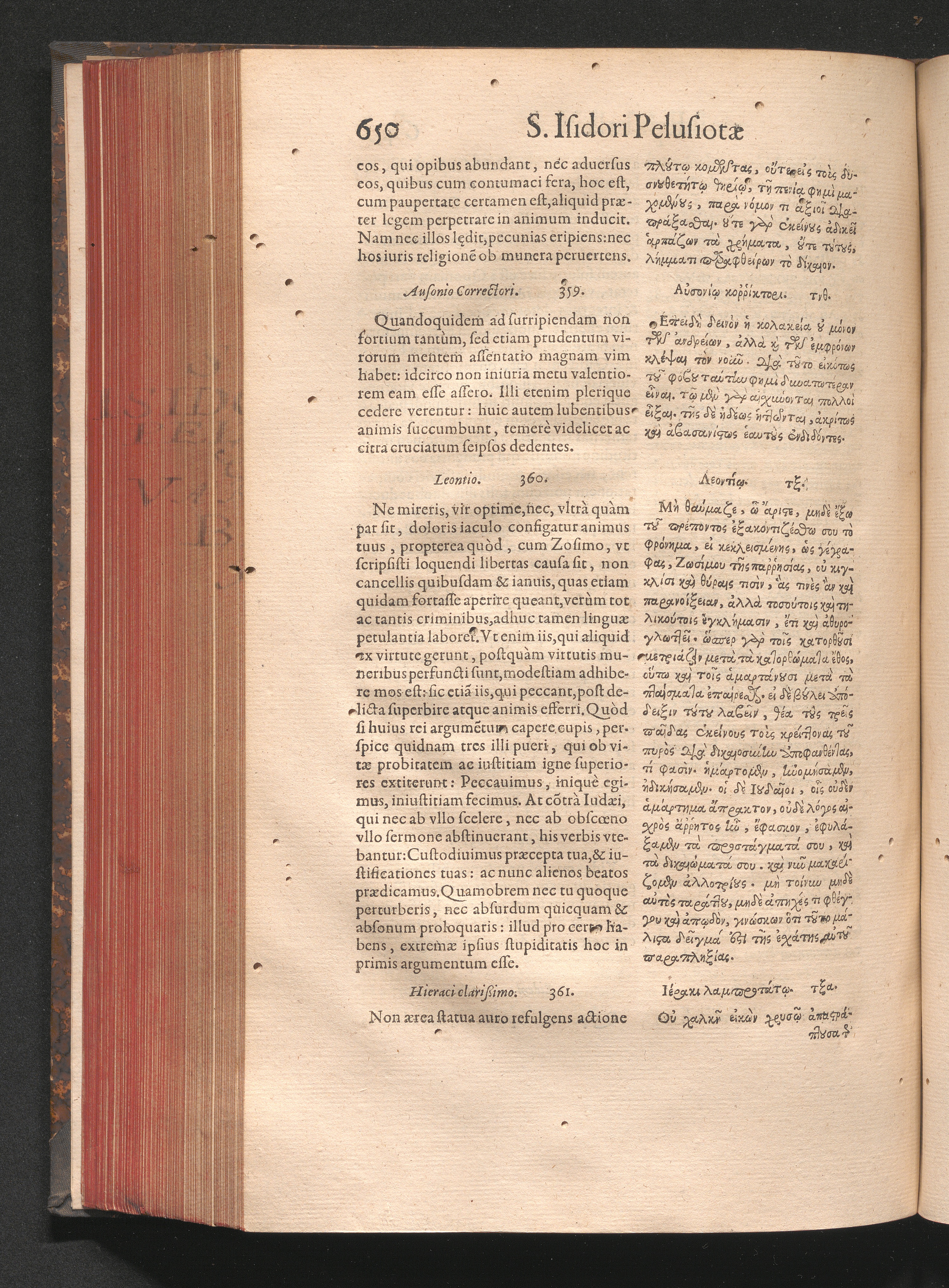 Epistolai tu hagiu Isidōru tu Pēlusiōtu / Quibus è regione accessit latina Clariss. viri Iacobi Billii Prunęi, S. Michaëlis in Eremo quondam Cœnobiarchæ, interpretatio