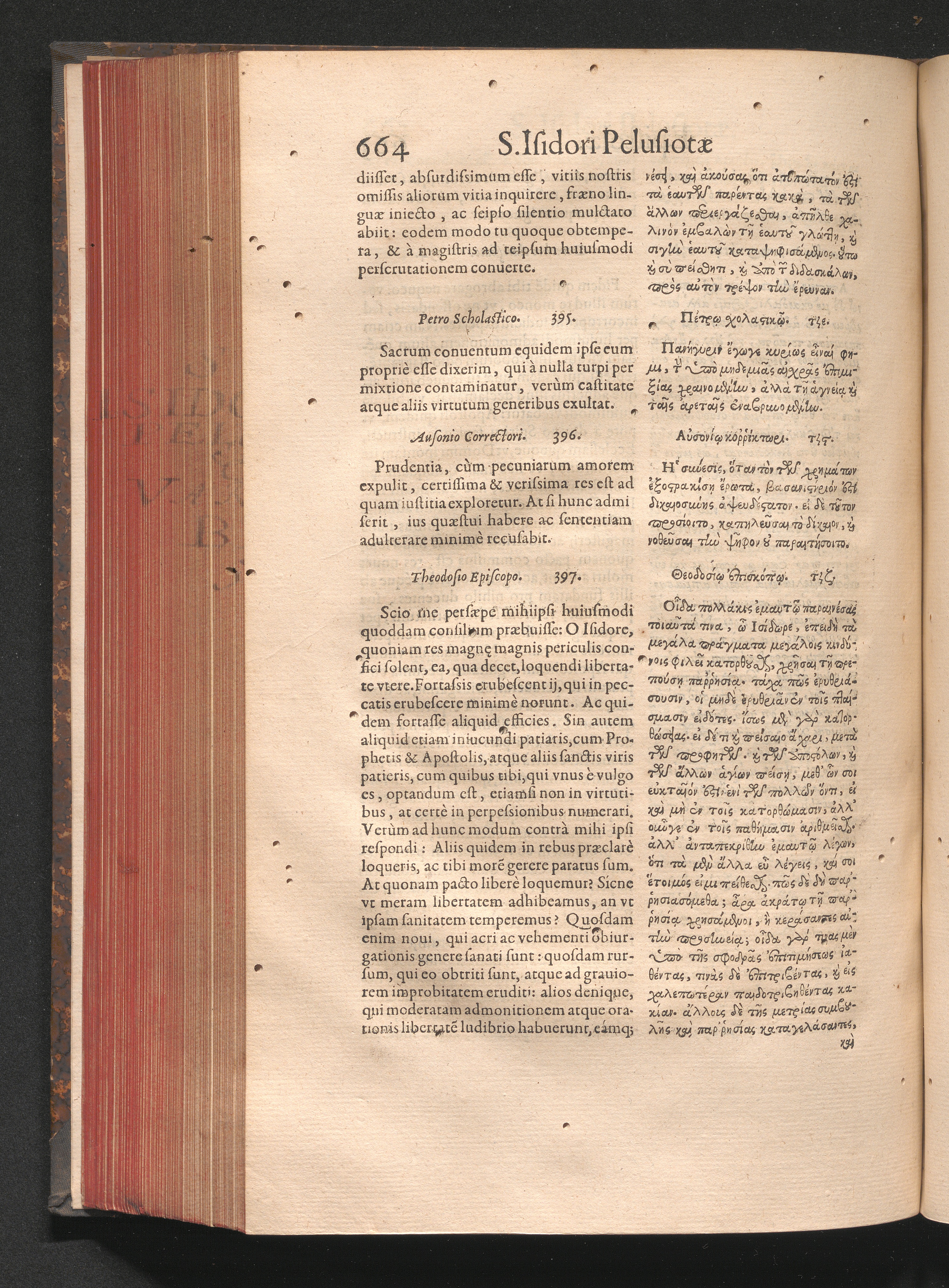 Epistolai tu hagiu Isidōru tu Pēlusiōtu / Quibus è regione accessit latina Clariss. viri Iacobi Billii Prunęi, S. Michaëlis in Eremo quondam Cœnobiarchæ, interpretatio
