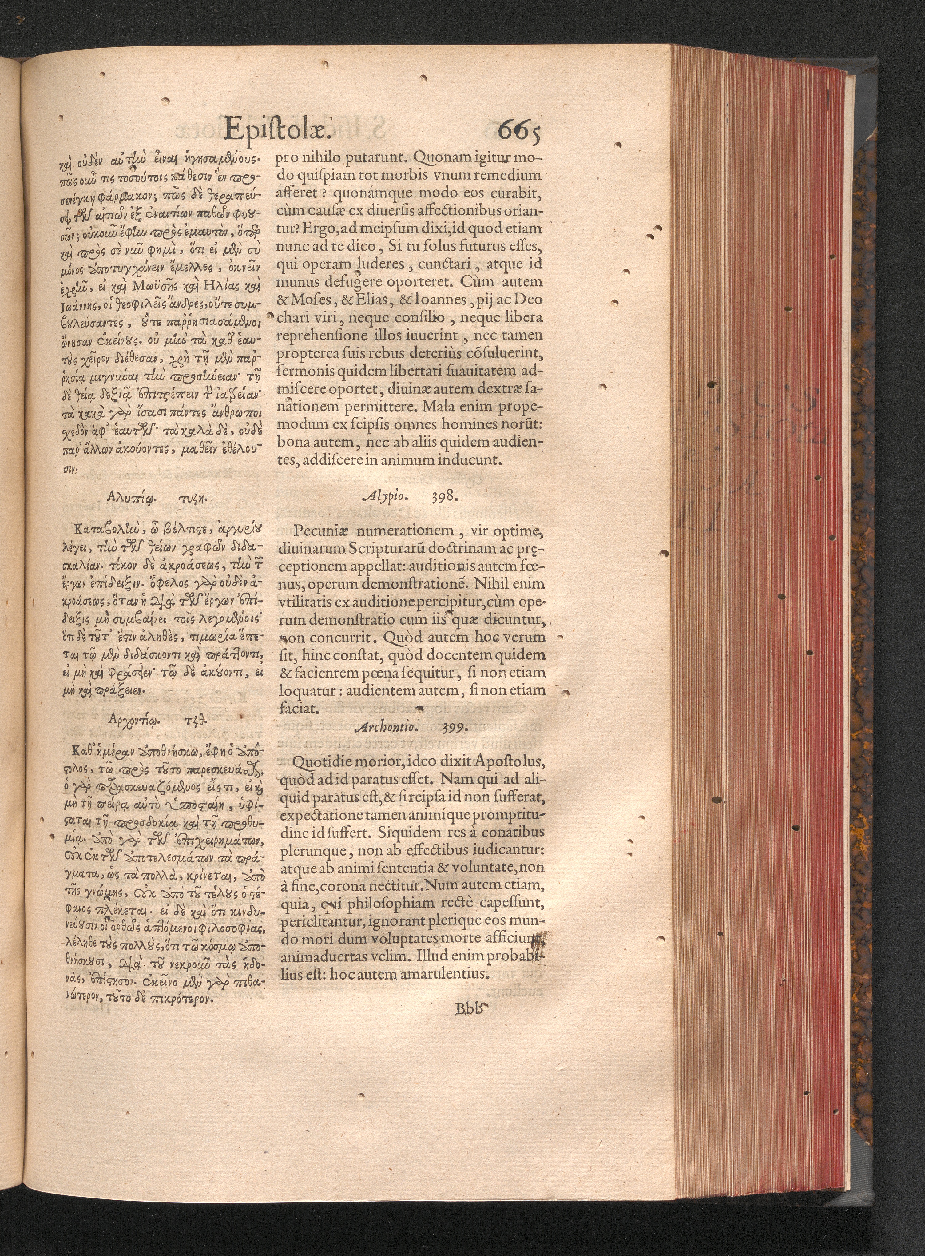 Epistolai tu hagiu Isidōru tu Pēlusiōtu / Quibus è regione accessit latina Clariss. viri Iacobi Billii Prunęi, S. Michaëlis in Eremo quondam Cœnobiarchæ, interpretatio