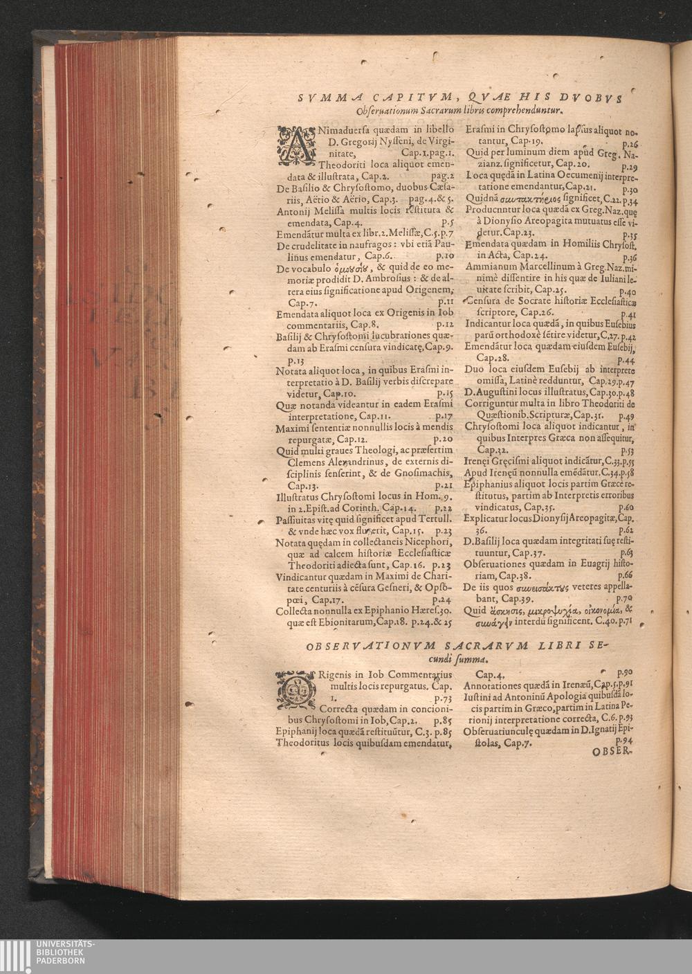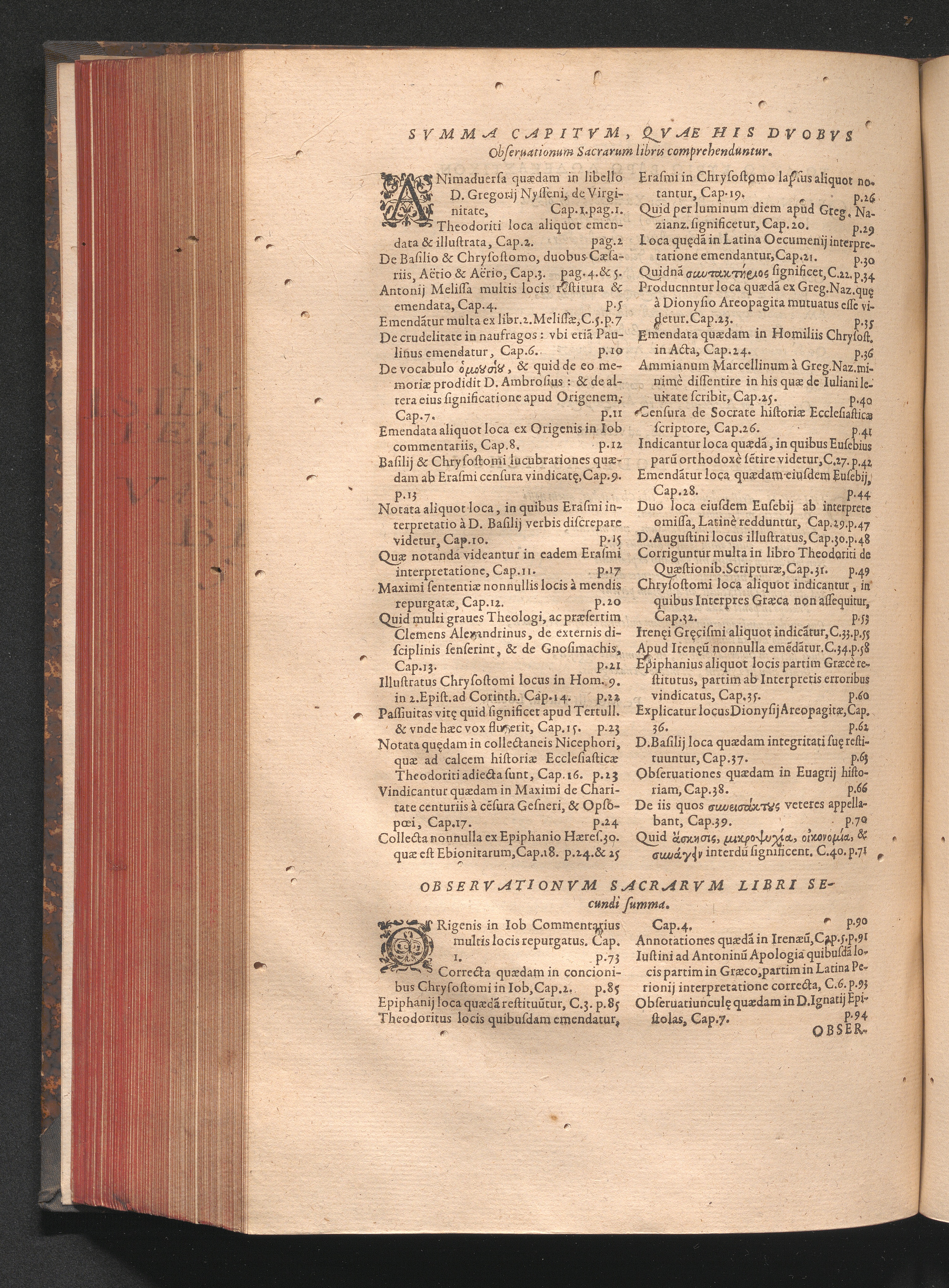Svmma Capitvm, Qvae His Dvobvs Obseruationum Sacrarum libris comprehenduntur.