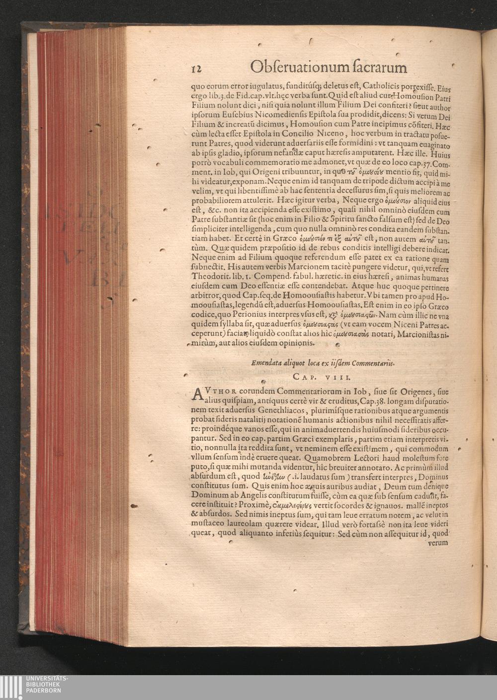 Emendata aliquot loca ex Origenis in Iob commentariis, Cap. 8.