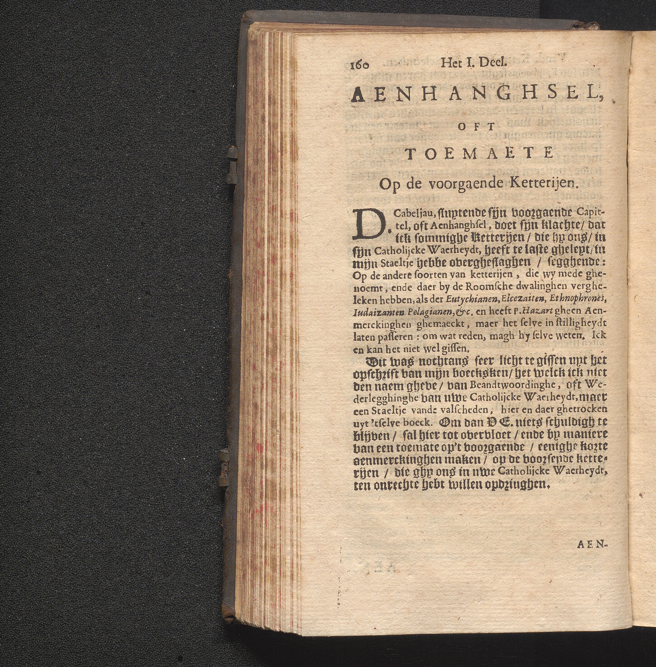 Aen-Merckingen Van Den Eerw. P. Cornelius Hazart, Priester der Societeyt Jesv. : Op Een Seker Schrift Raeckende verscheyde oude Ketterijen, en Superstitien, seer onlanghs teghen hem uyt-ghegheven / Door D. Petrum Cabeljau Predicant, ende Regent van't Collegie der Ed.Gr.Mog.-Heeren Staten van Hollant, ende West-Vrieslandt, tot Leyden