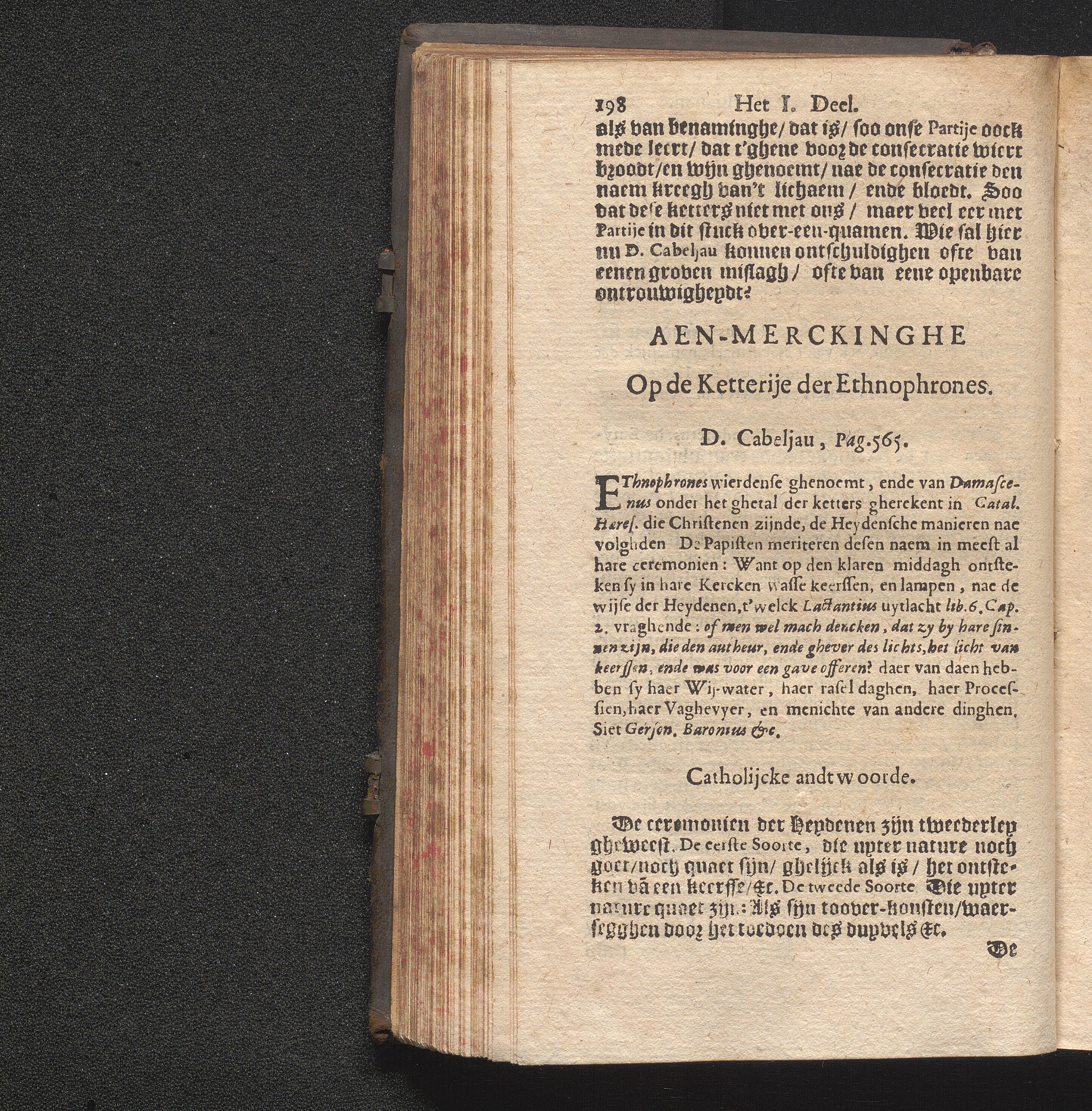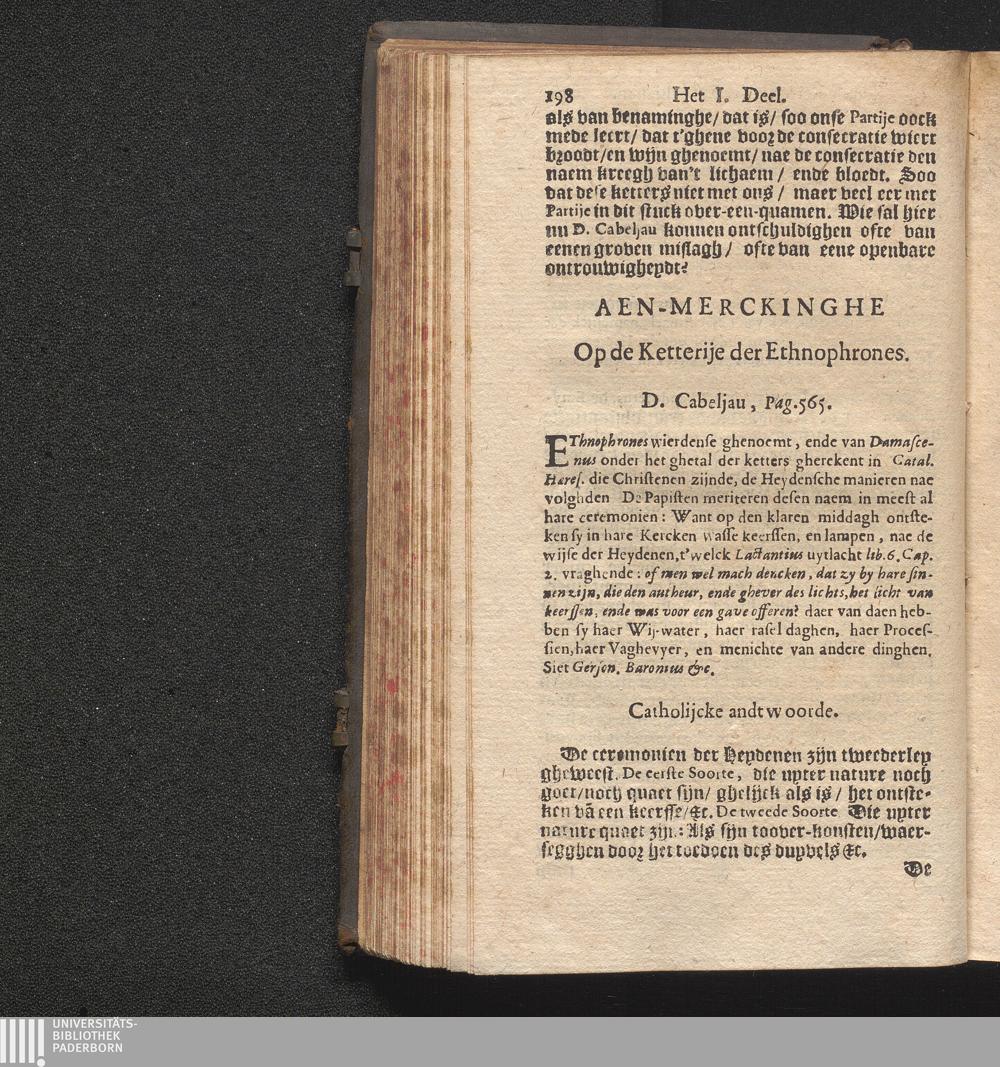 Aen-Merckingen Van Den Eerw. P. Cornelius Hazart, Priester der Societeyt Jesv. : Op Een Seker Schrift Raeckende verscheyde oude Ketterijen, en Superstitien, seer onlanghs teghen hem uyt-ghegheven / Door D. Petrum Cabeljau Predicant, ende Regent van't Collegie der Ed.Gr.Mog.-Heeren Staten van Hollant, ende West-Vrieslandt, tot Leyden
