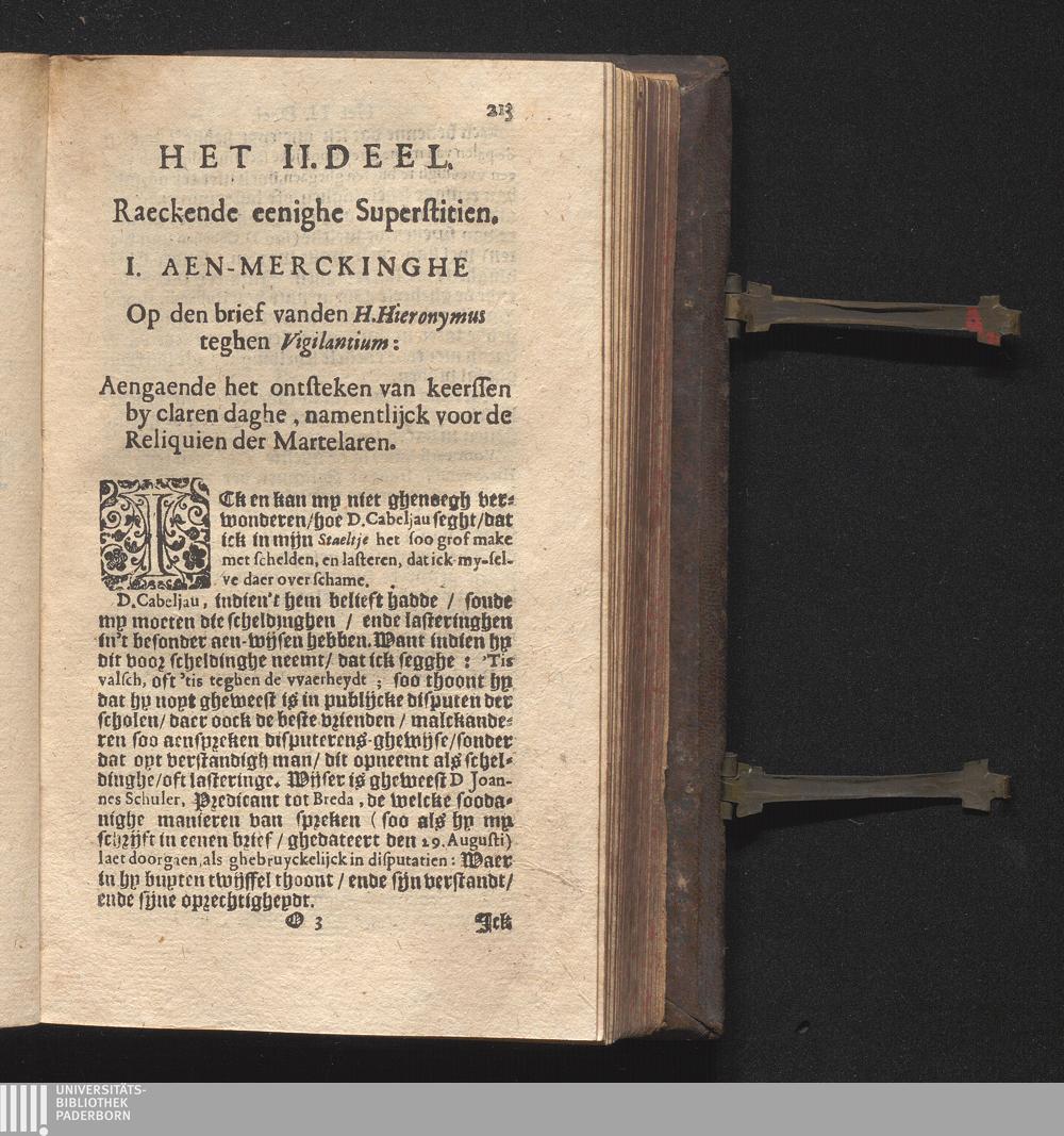 Aen-Merckingen Van Den Eerw. P. Cornelius Hazart, Priester der Societeyt Jesv. : Op Een Seker Schrift Raeckende verscheyde oude Ketterijen, en Superstitien, seer onlanghs teghen hem uyt-ghegheven / Door D. Petrum Cabeljau Predicant, ende Regent van't Collegie der Ed.Gr.Mog.-Heeren Staten van Hollant, ende West-Vrieslandt, tot Leyden