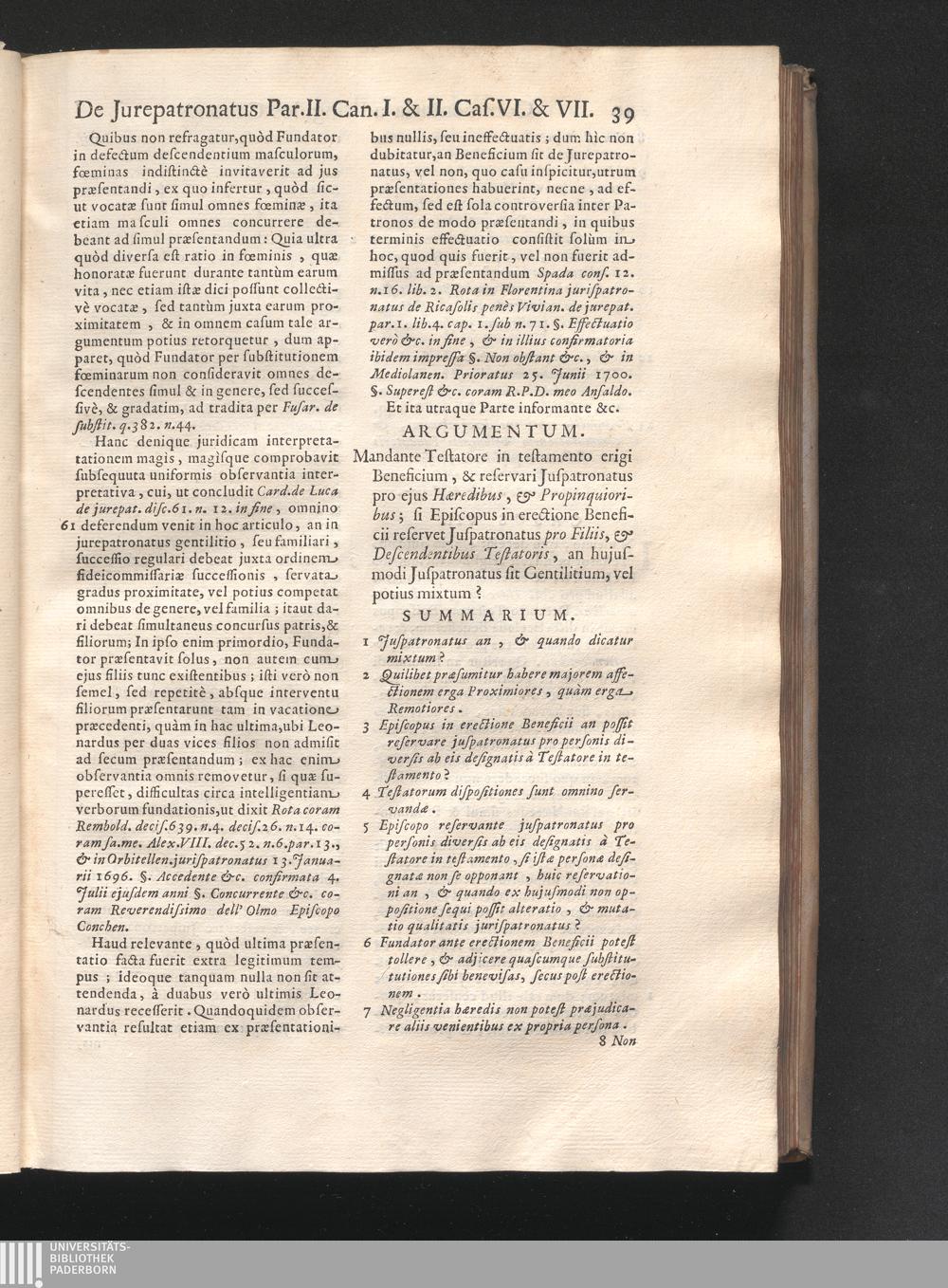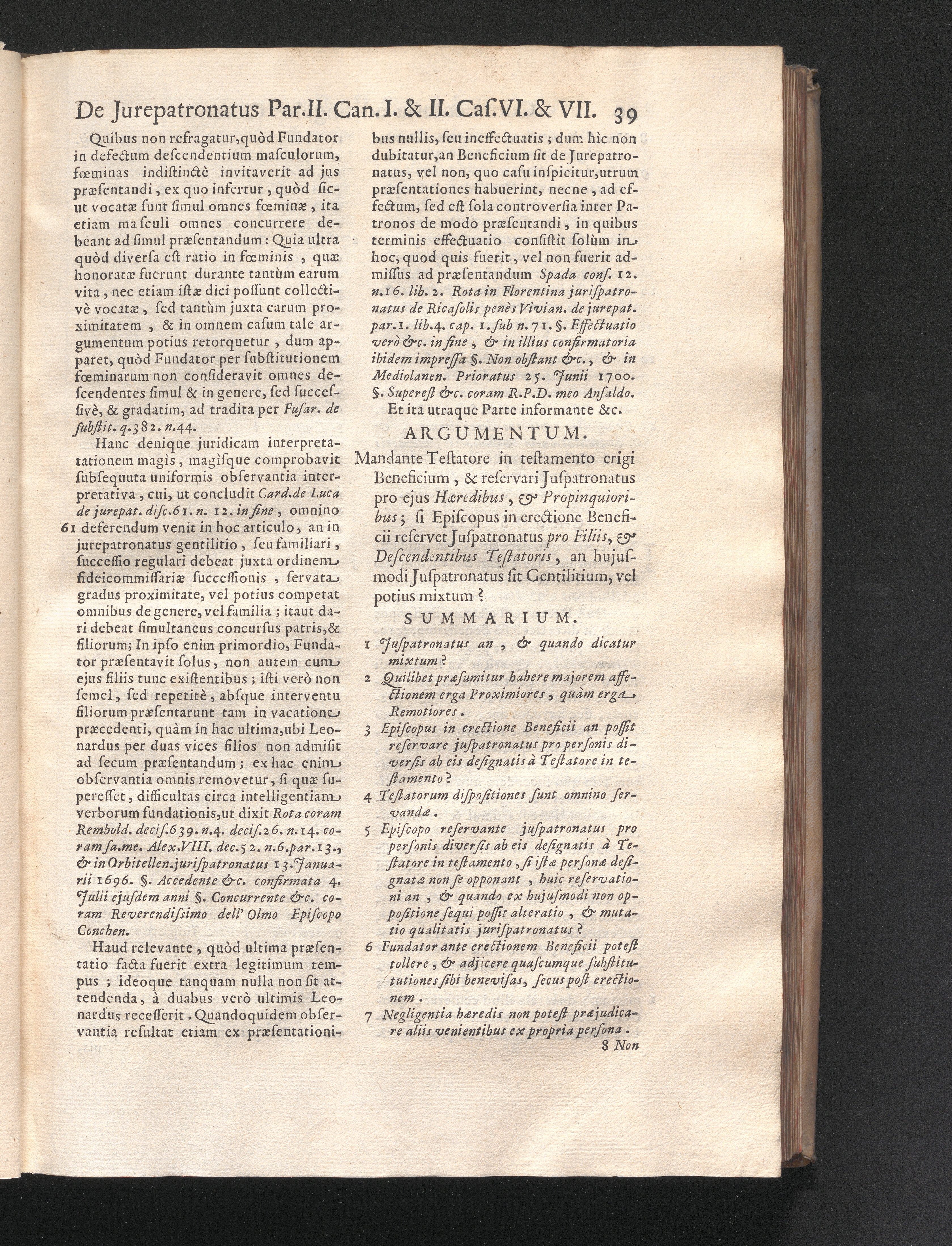 Casus VII. Argumentum. Mandante Testatore in testamento erigi Beneficium, & reservari[...]