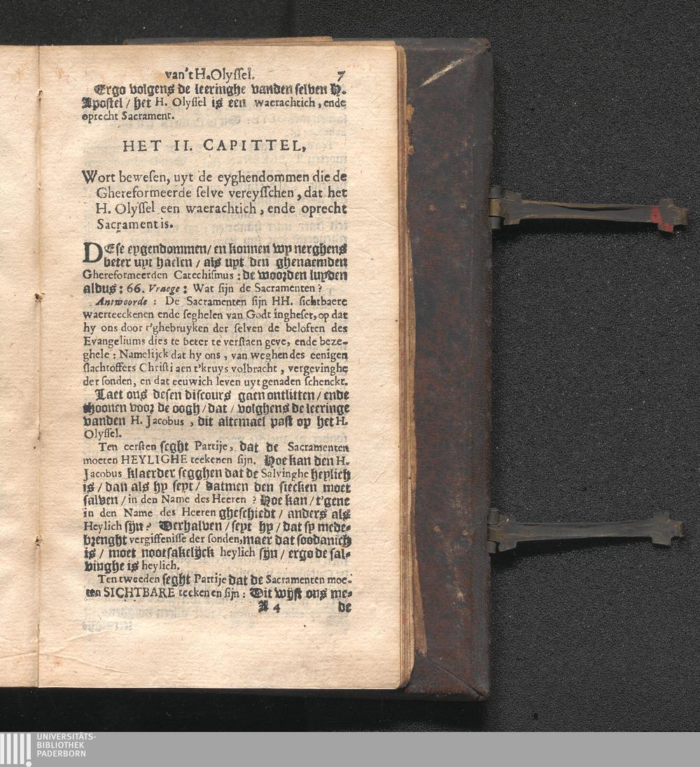 Het II. Capittel, Wort bewesen, uyt de eyghendommen die de Ghereformeerde selve vereysschen, dat het H. Olyssel een waerachtich, ende oprecht Sacrament is.