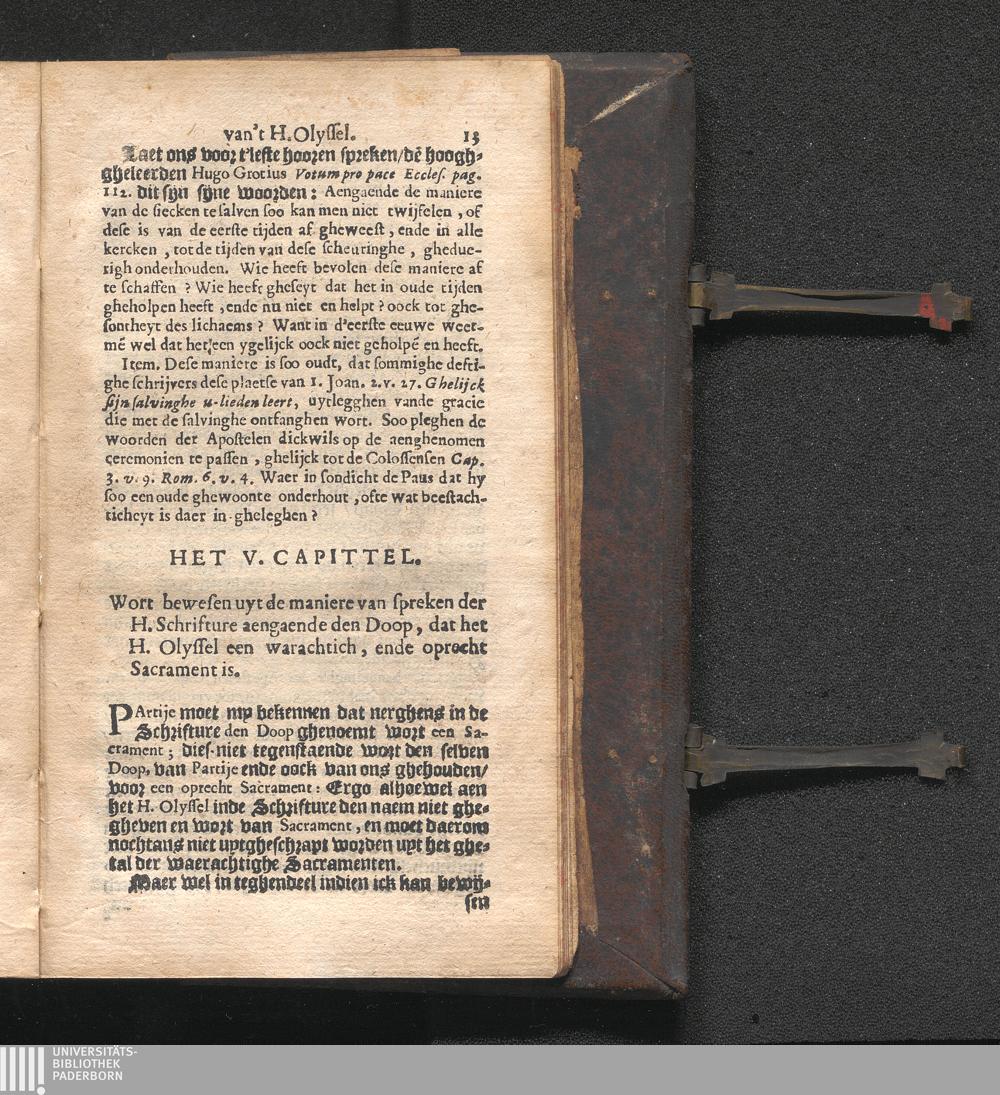 Het. V. Capittel. Wort bewesen uyt de maniere van spreken der H. Schrifture aengaende den Doop, dat het H. Olyssel een warachtich, ende oprecht Sacrament is.