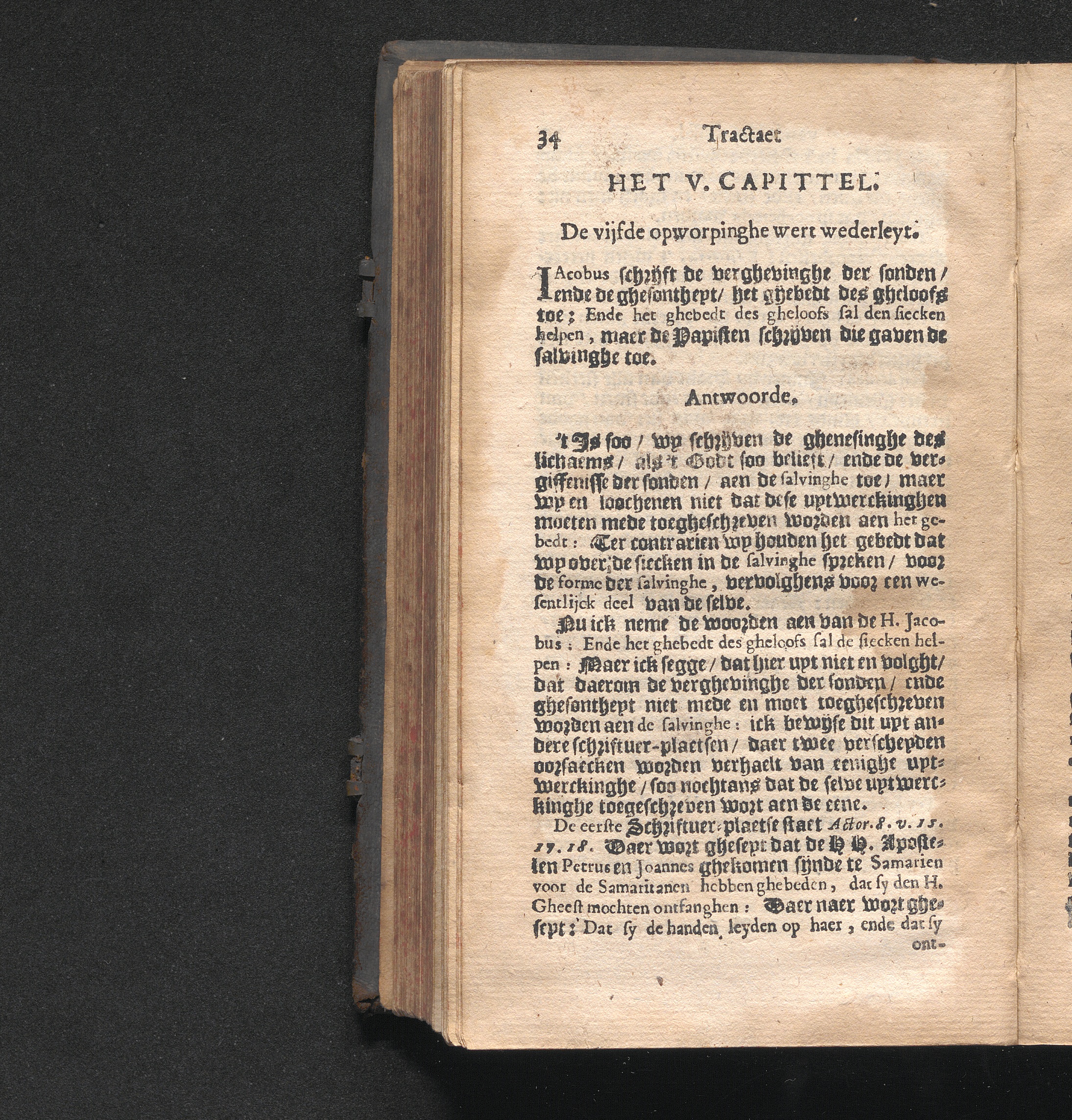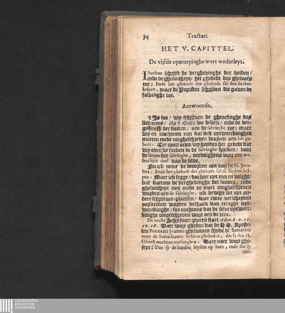 Het. V. Capittel. Wort bewesen uyt de maniere van spreken der H. Schrifture aengaende den Doop, dat het H. Olyssel een warachtich, ende oprecht Sacrament is.