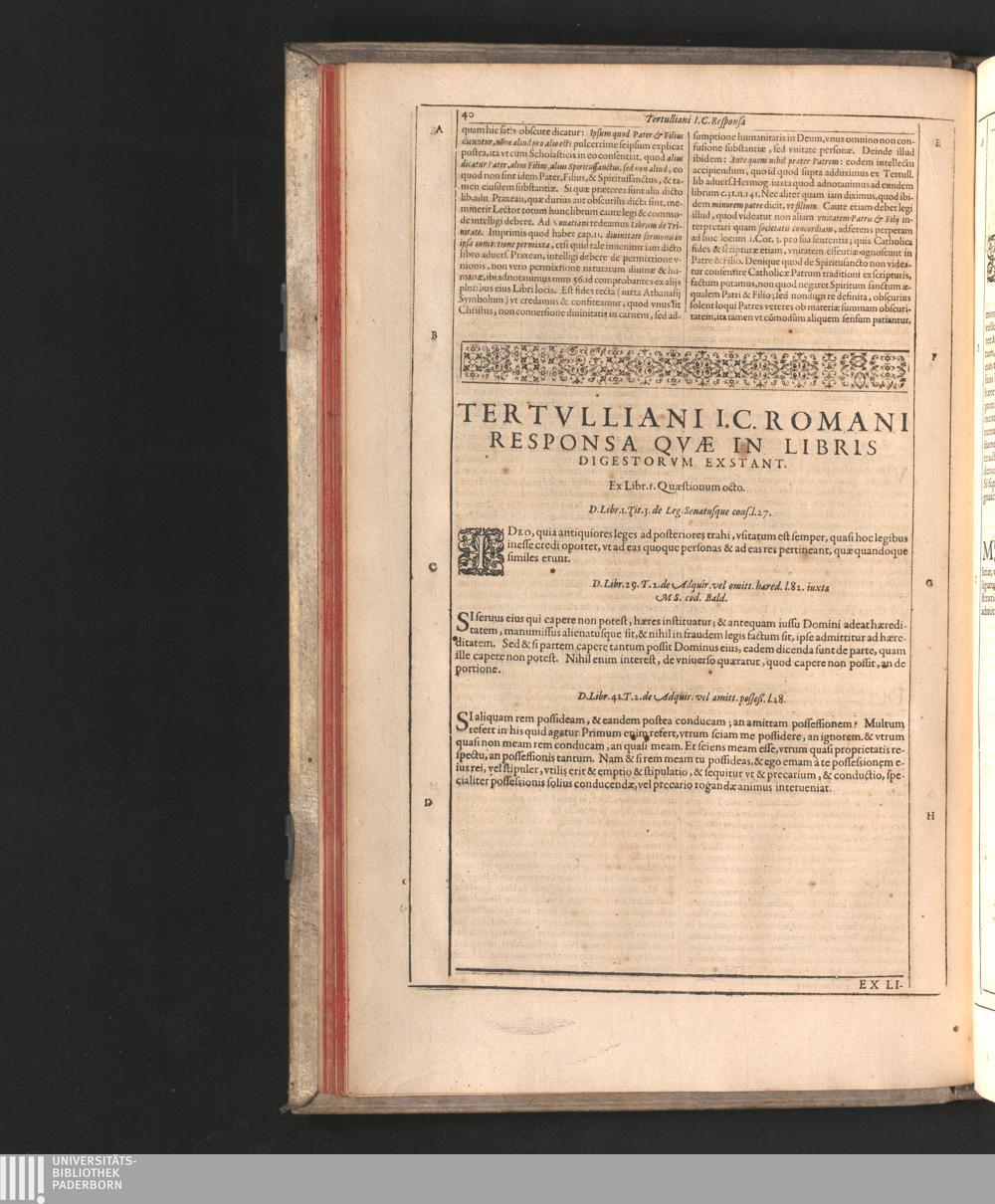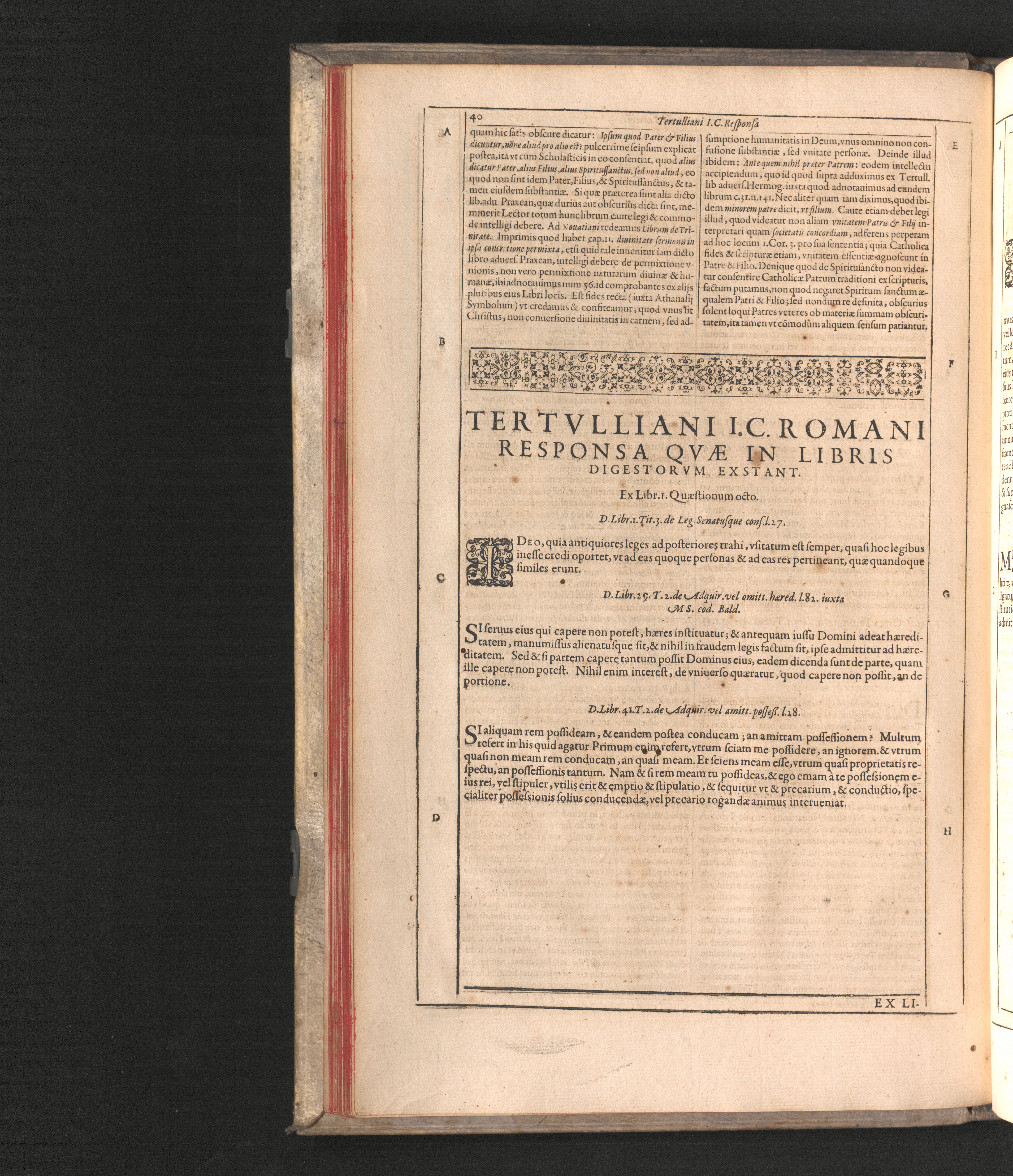 Q. Septimii Florentis Tertvlliani Carthaginiensis Presbyteri, Opera Qvæ Hactenvs Reperiri Potvervnt Omnia : Iam Postremvm, Ad Exemplaria manuscripta collatione facta, quàm accuratiss. recognita, aliquot etiam libris auctiora; nunc primùm in capita, & certo ordine, habita quantum fieri potuit temporum ratione, in quinque Tomos distincta / Cum Iacobi Pamelii Brvgensis, Theologi, Archidiaconi Audomaropolitani, Argumentis & Adnotationibus toti operi interiectis, quibus tum loci obscuriores explicantur, tum quicquid ad Antiquitatem Ecclesiasticam spectat, illustratur ... Acceßère & Loci ex coniectura Latini Latinii Viterbiensis restituti, & erudita in lib. de Pallio Joannis Mercerii Antecessoris Bituricensis Commentaria