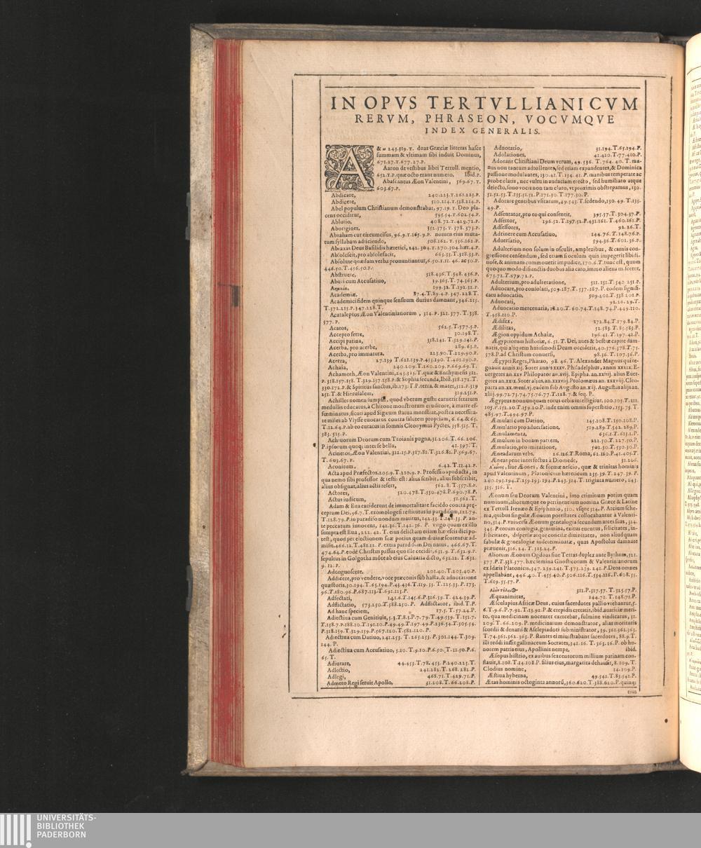 Q. Septimii Florentis Tertvlliani Carthaginiensis Presbyteri, Opera Qvæ Hactenvs Reperiri Potvervnt Omnia : Iam Postremvm, Ad Exemplaria manuscripta collatione facta, quàm accuratiss. recognita, aliquot etiam libris auctiora; nunc primùm in capita, & certo ordine, habita quantum fieri potuit temporum ratione, in quinque Tomos distincta / Cum Iacobi Pamelii Brvgensis, Theologi, Archidiaconi Audomaropolitani, Argumentis & Adnotationibus toti operi interiectis, quibus tum loci obscuriores explicantur, tum quicquid ad Antiquitatem Ecclesiasticam spectat, illustratur ... Acceßère & Loci ex coniectura Latini Latinii Viterbiensis restituti, & erudita in lib. de Pallio Joannis Mercerii Antecessoris Bituricensis Commentaria