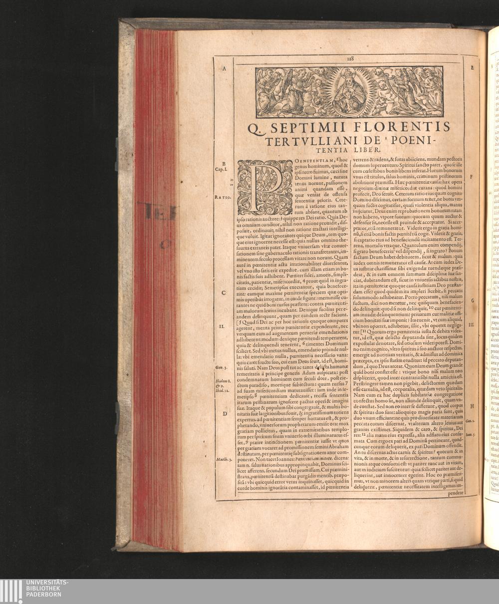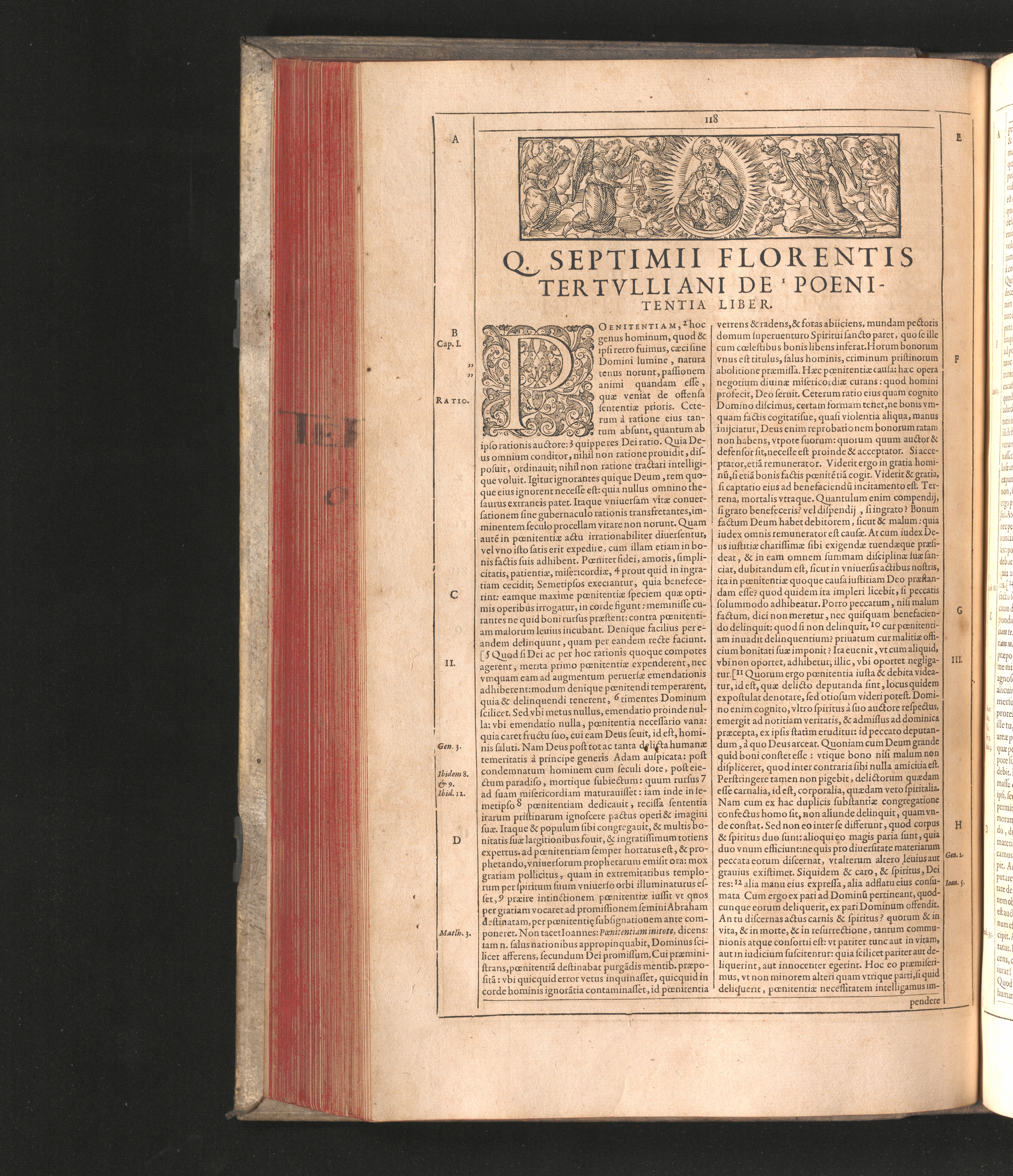 Q. Septimii Florentis Tertvlliani Carthaginiensis Presbyteri, Opera Qvæ Hactenvs Reperiri Potvervnt Omnia : Iam Postremvm, Ad Exemplaria manuscripta collatione facta, quàm accuratiss. recognita, aliquot etiam libris auctiora; nunc primùm in capita, & certo ordine, habita quantum fieri potuit temporum ratione, in quinque Tomos distincta / Cum Iacobi Pamelii Brvgensis, Theologi, Archidiaconi Audomaropolitani, Argumentis & Adnotationibus toti operi interiectis, quibus tum loci obscuriores explicantur, tum quicquid ad Antiquitatem Ecclesiasticam spectat, illustratur ... Acceßère & Loci ex coniectura Latini Latinii Viterbiensis restituti, & erudita in lib. de Pallio Joannis Mercerii Antecessoris Bituricensis Commentaria