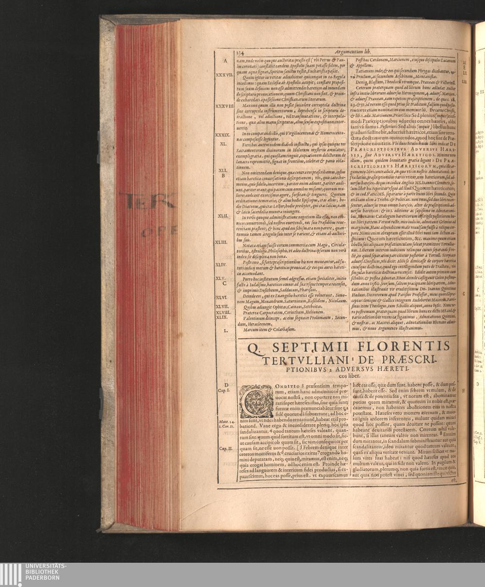Q. Septimii Florentis Tertvlliani Carthaginiensis Presbyteri, Opera Qvæ Hactenvs Reperiri Potvervnt Omnia : Iam Postremvm, Ad Exemplaria manuscripta collatione facta, quàm accuratiss. recognita, aliquot etiam libris auctiora; nunc primùm in capita, & certo ordine, habita quantum fieri potuit temporum ratione, in quinque Tomos distincta / Cum Iacobi Pamelii Brvgensis, Theologi, Archidiaconi Audomaropolitani, Argumentis & Adnotationibus toti operi interiectis, quibus tum loci obscuriores explicantur, tum quicquid ad Antiquitatem Ecclesiasticam spectat, illustratur ... Acceßère & Loci ex coniectura Latini Latinii Viterbiensis restituti, & erudita in lib. de Pallio Joannis Mercerii Antecessoris Bituricensis Commentaria
