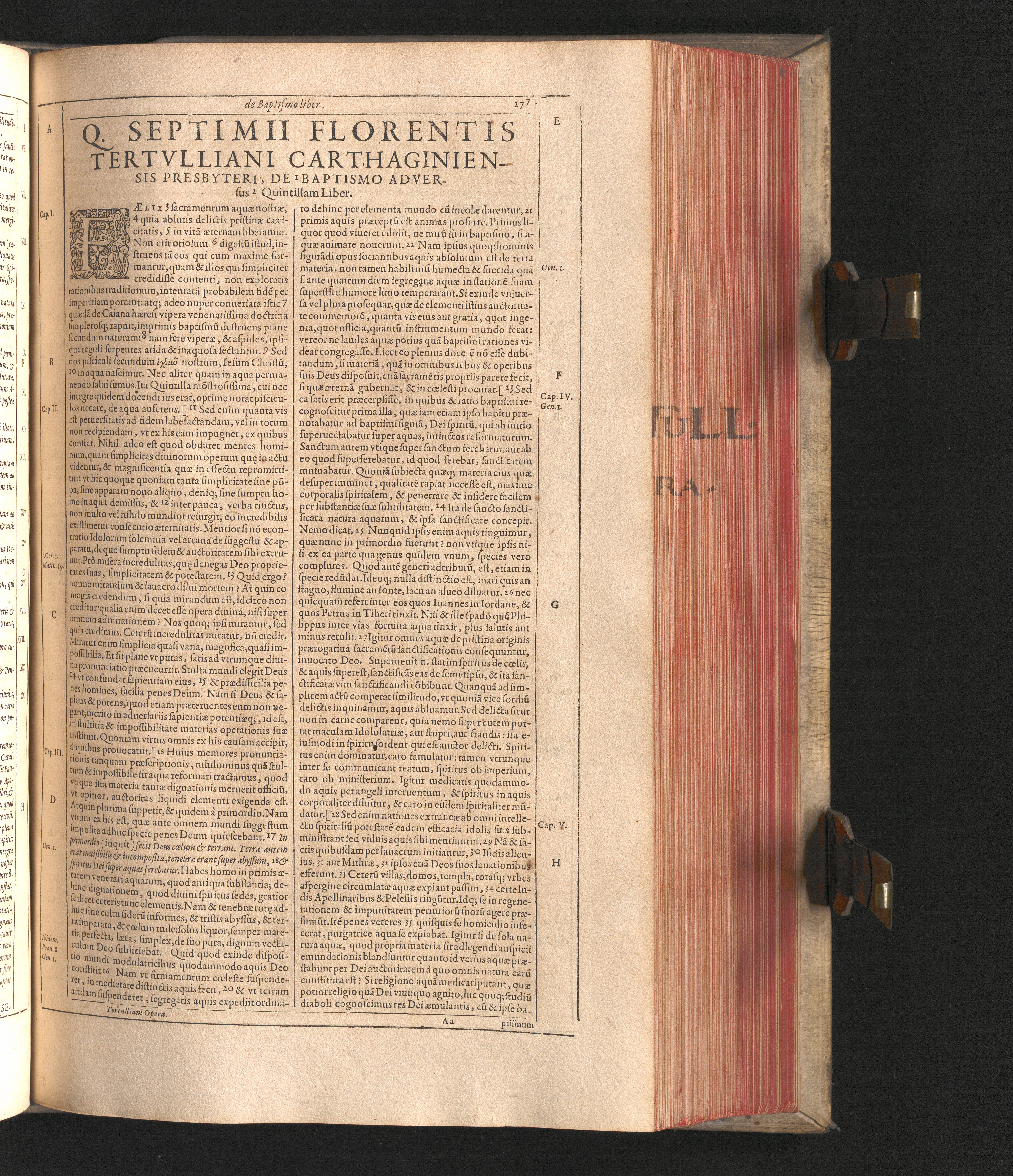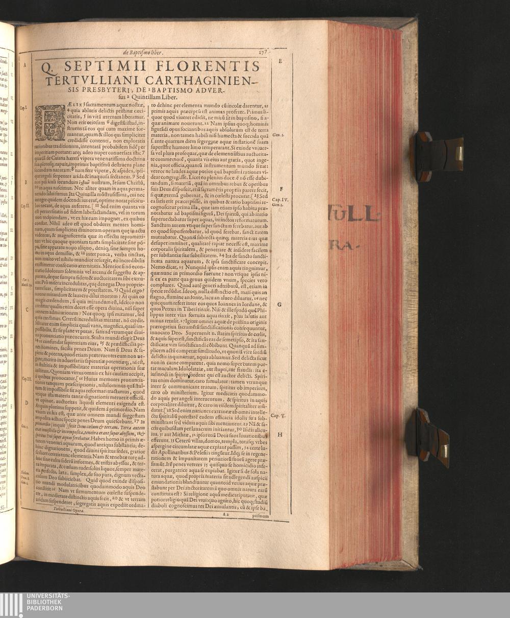 Q. Septimii Florentis Tertvlliani Carthaginiensis Presbyteri, Opera Qvæ Hactenvs Reperiri Potvervnt Omnia : Iam Postremvm, Ad Exemplaria manuscripta collatione facta, quàm accuratiss. recognita, aliquot etiam libris auctiora; nunc primùm in capita, & certo ordine, habita quantum fieri potuit temporum ratione, in quinque Tomos distincta / Cum Iacobi Pamelii Brvgensis, Theologi, Archidiaconi Audomaropolitani, Argumentis & Adnotationibus toti operi interiectis, quibus tum loci obscuriores explicantur, tum quicquid ad Antiquitatem Ecclesiasticam spectat, illustratur ... Acceßère & Loci ex coniectura Latini Latinii Viterbiensis restituti, & erudita in lib. de Pallio Joannis Mercerii Antecessoris Bituricensis Commentaria